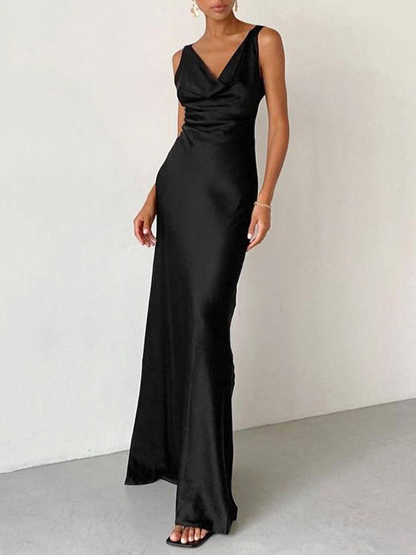 Bodycon High Waisted Solid Color V-Neck Maxi Dresses