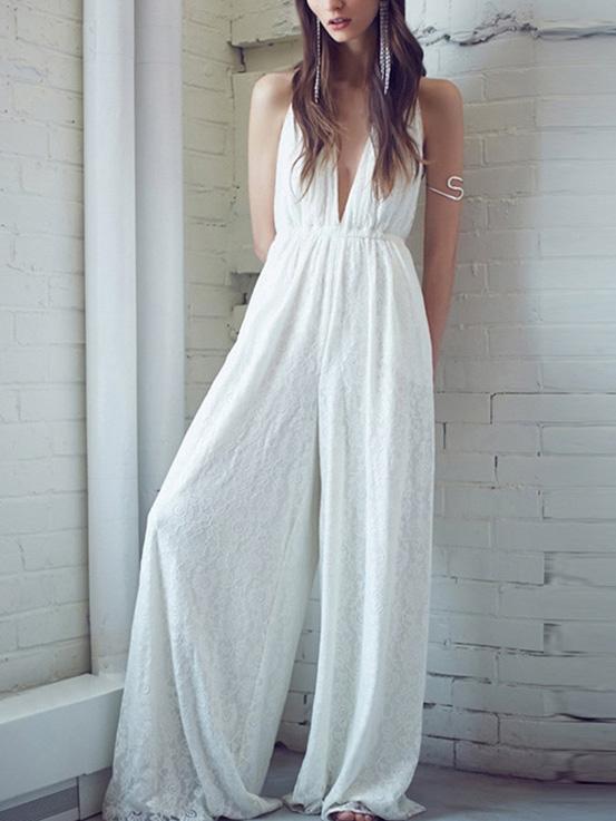 Bohemia Deep Halterneck V-neck Wide Leg Jumpsuits
