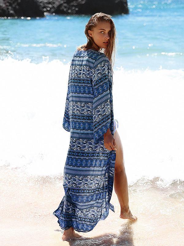 Bohemia Floral-Printed Long Sleeve Beach Cover-Ups