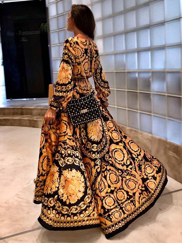 Bohemia Floral V-Neck Waisted Maxi Dress