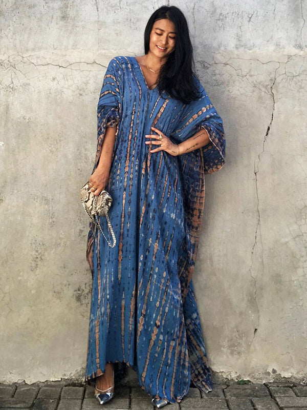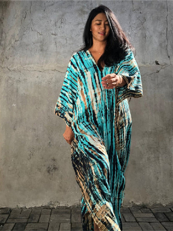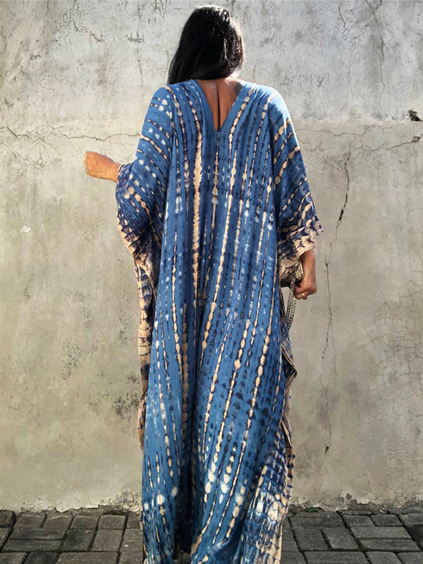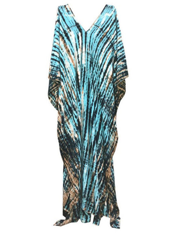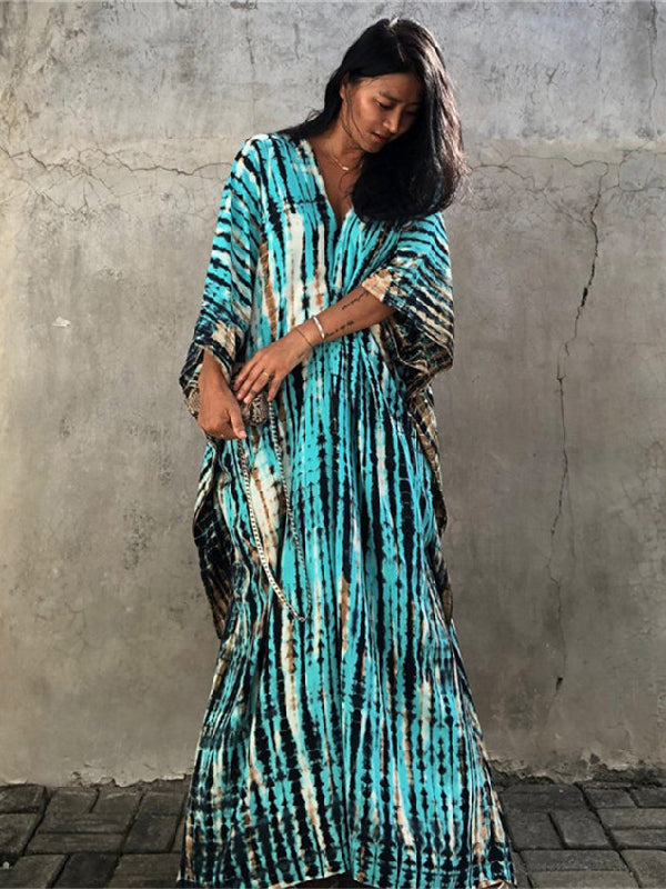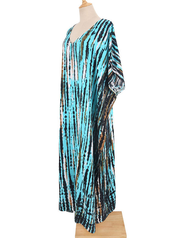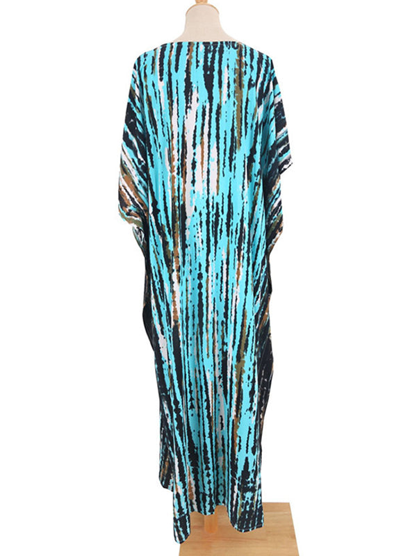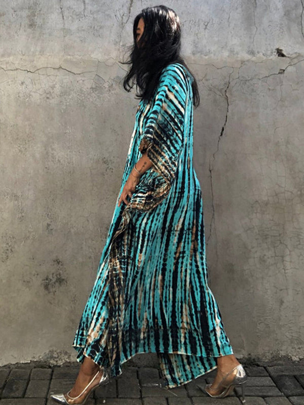 Bohemia Oversized Striped Printed Batwing Sleeves Cover-Up