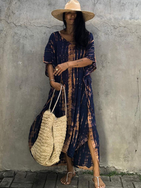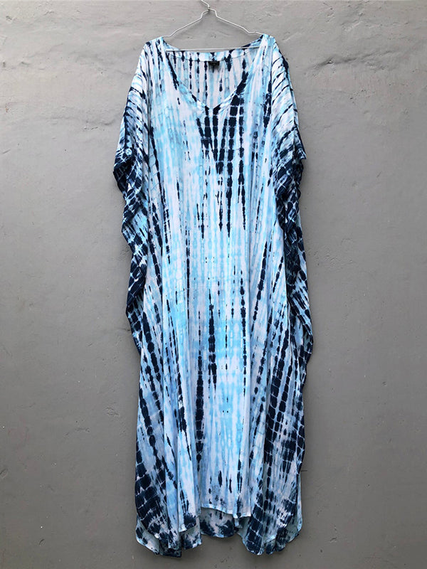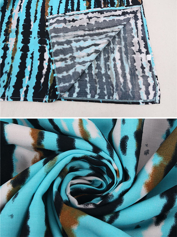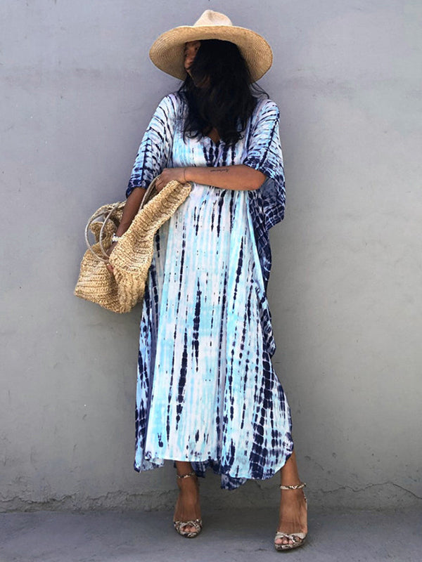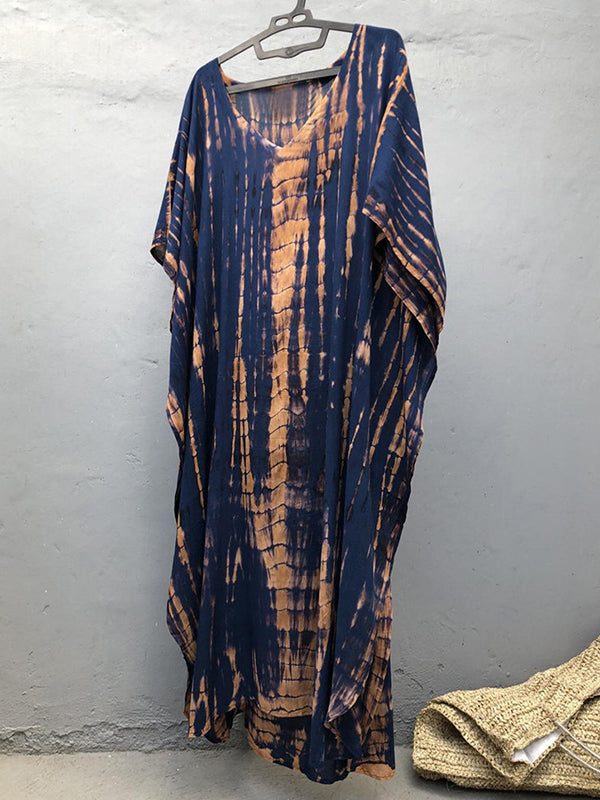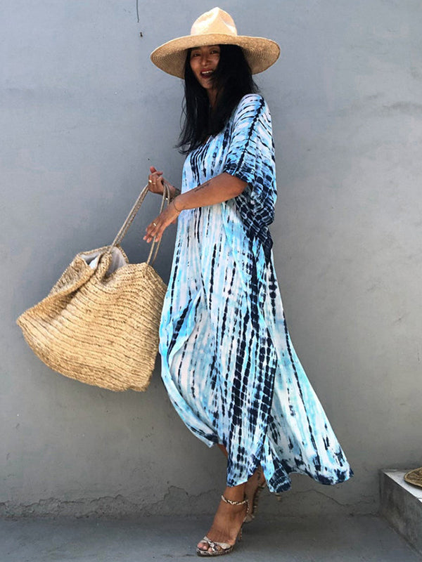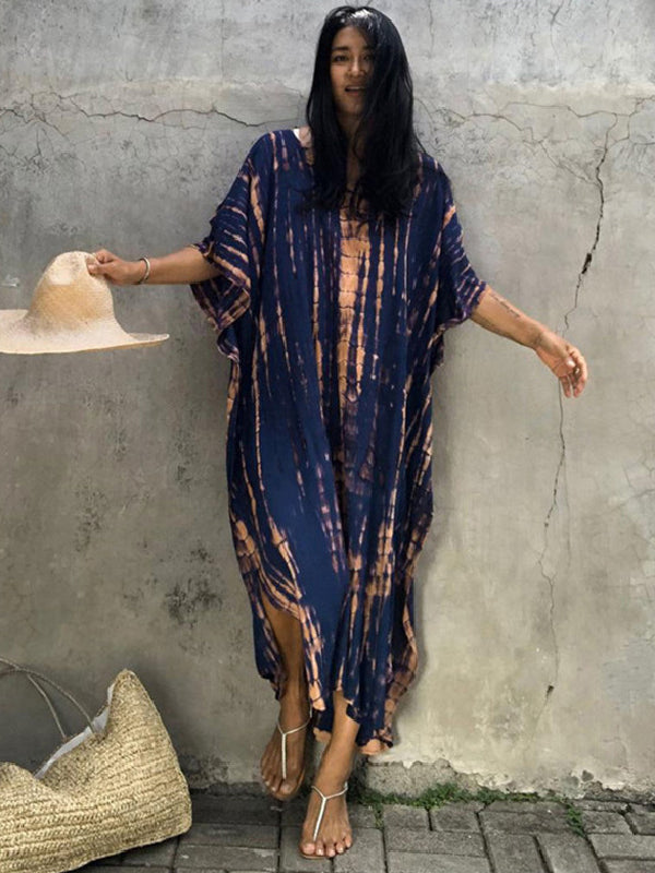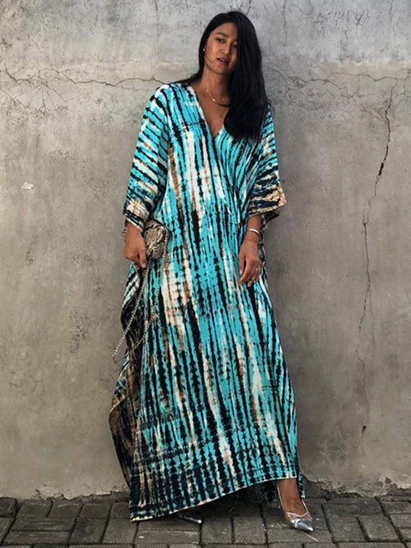 Bohemia Oversized Striped Printed Batwing Sleeves Cover-Up