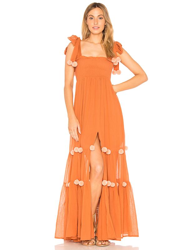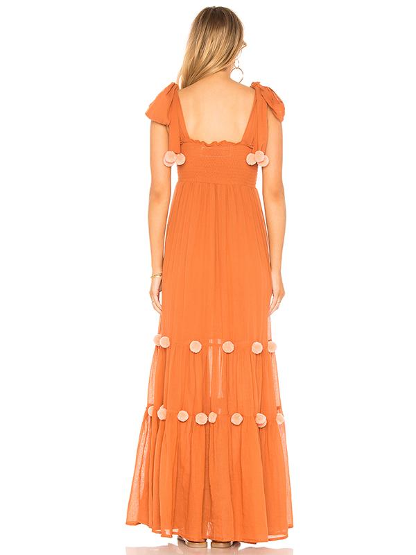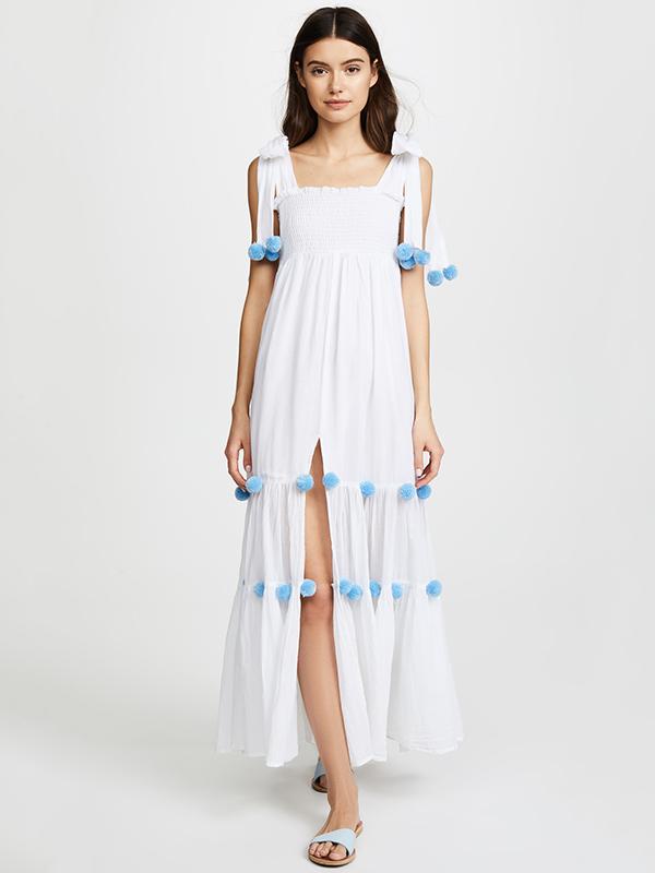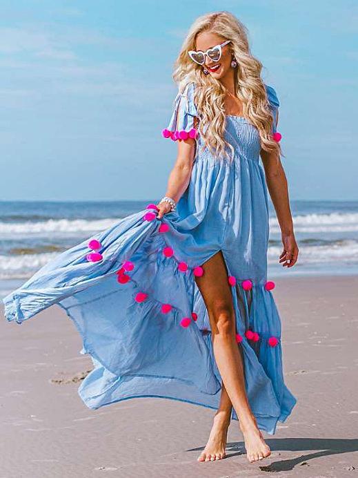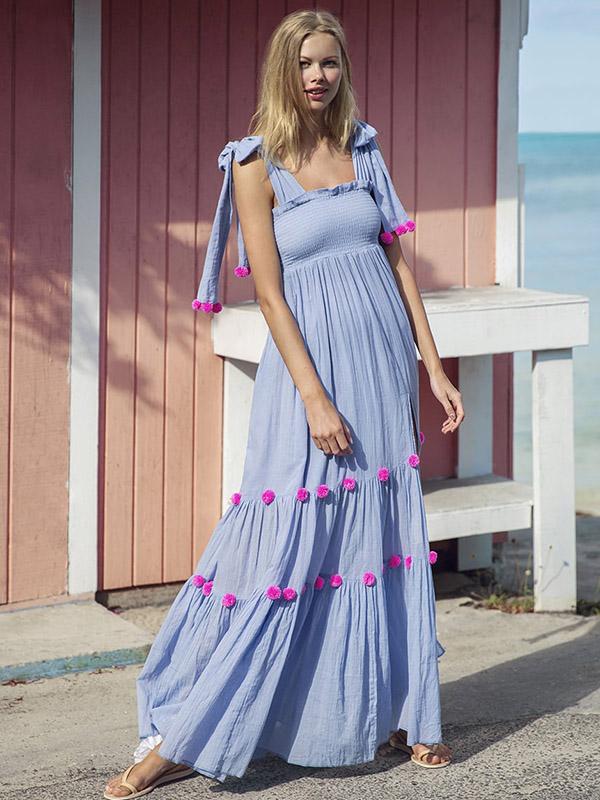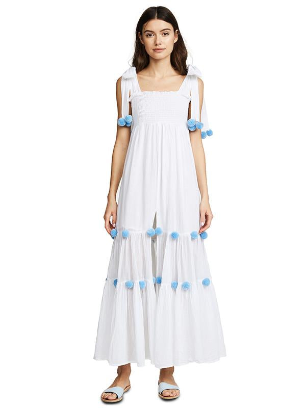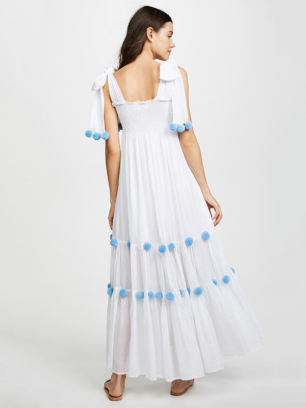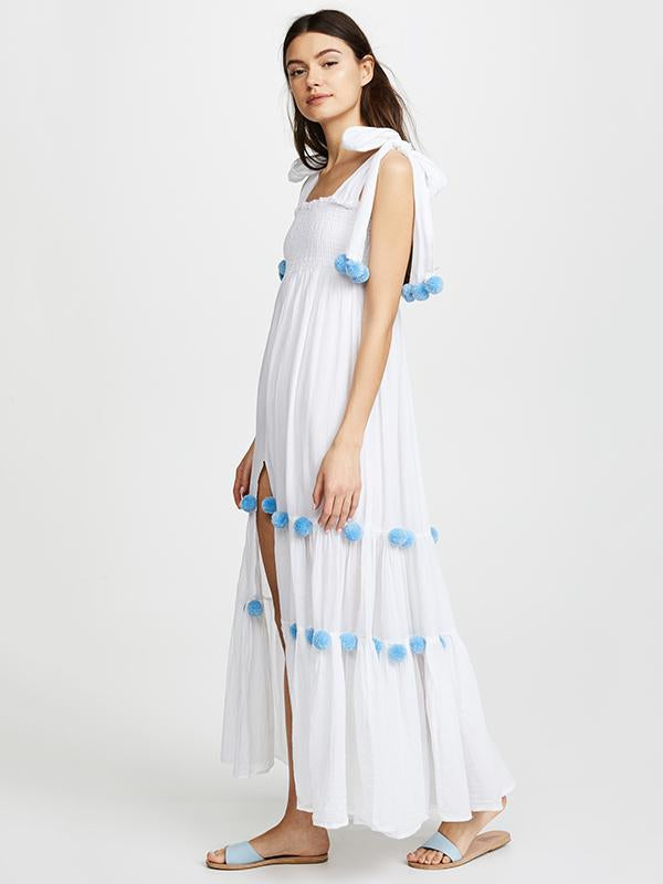 Bohemia Pompoms Knotted Bowknot Split-front Maxi Dress
