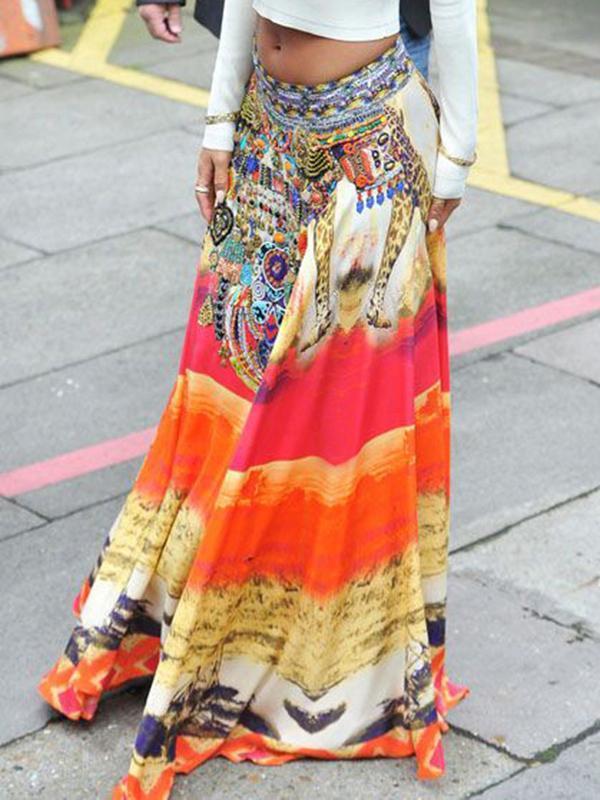 Bohemia Printed Big Hemline Skirt Bottoms