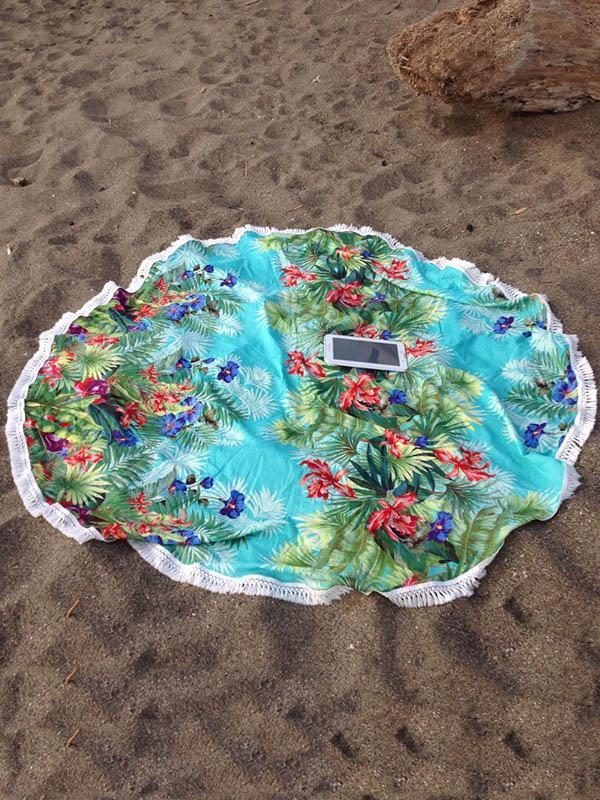 Bohemia Printed Plant Round Beach Mat Yoga Mat