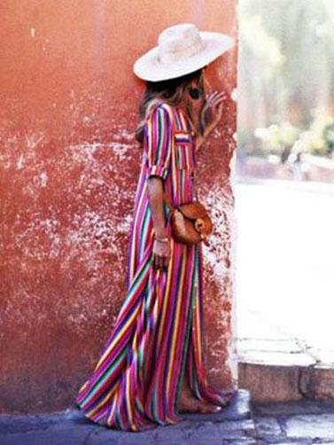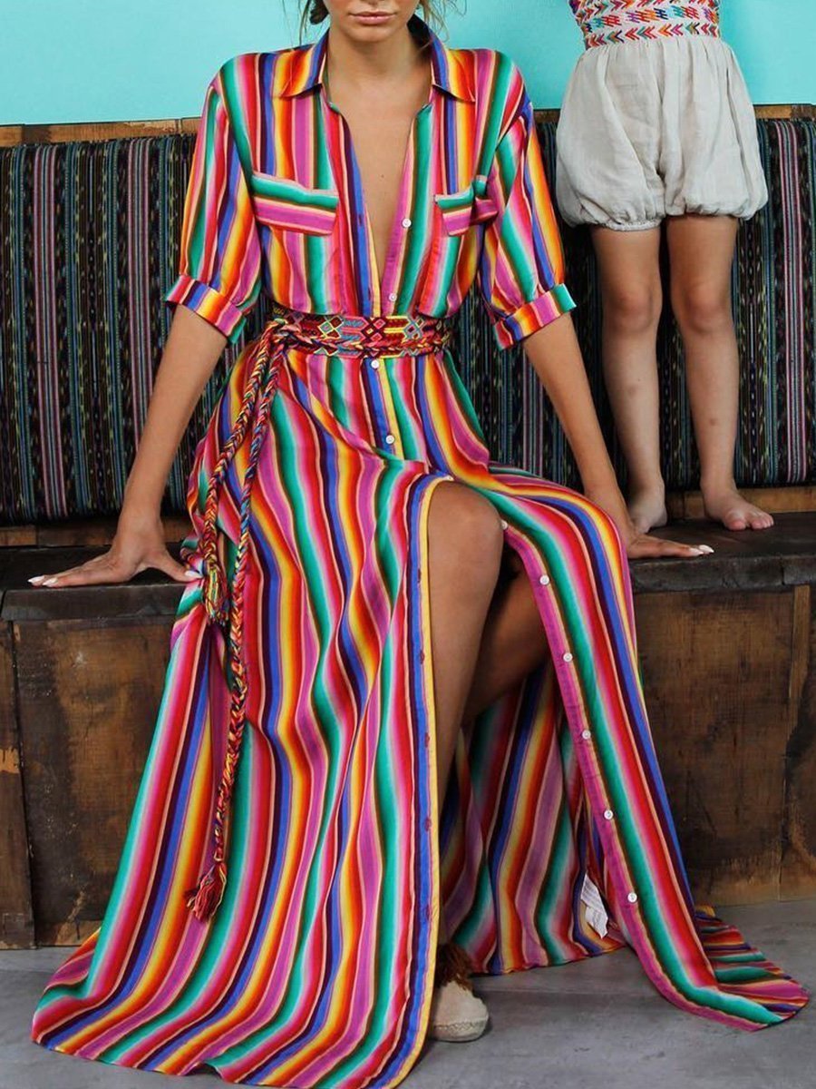 Bohemia Striped Shirt Maxi Dress