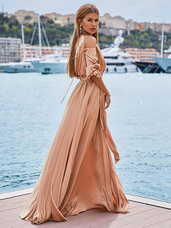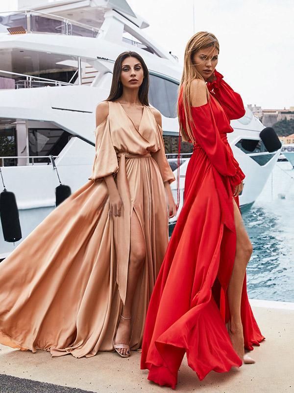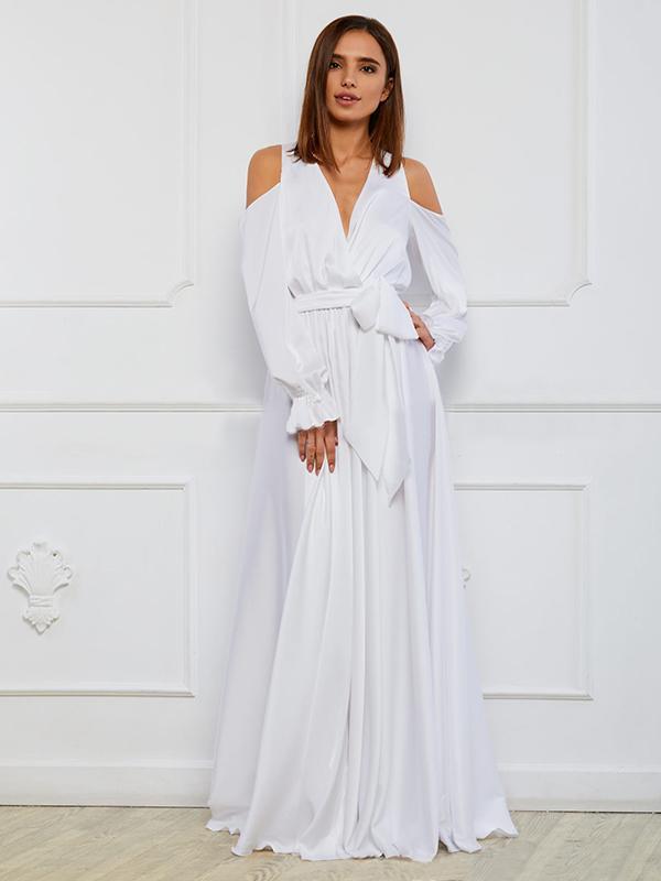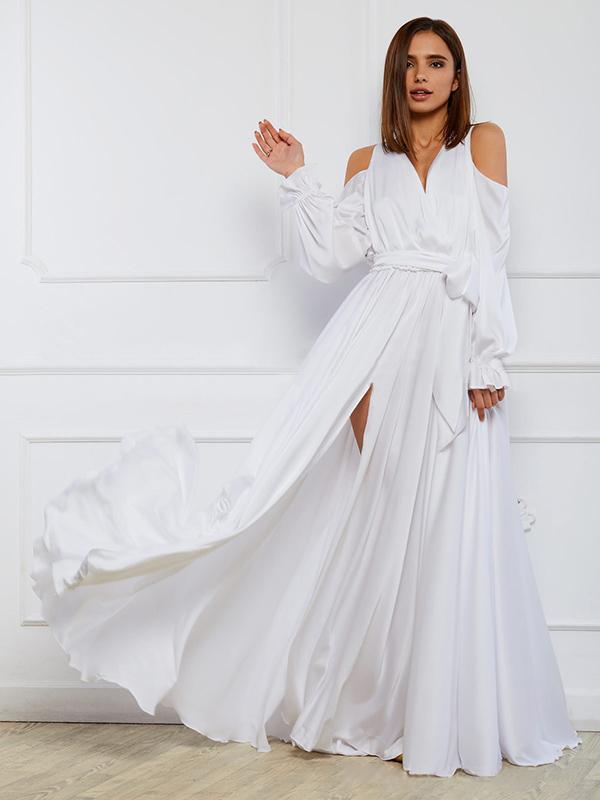 Bohemia V-Neck Long sleeves Off shoulder Split-side Maxi Dress
