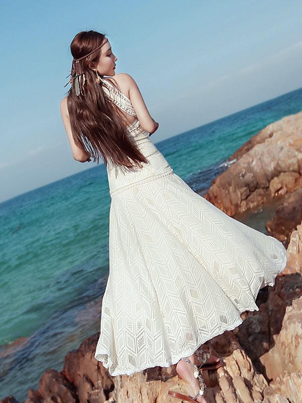 Bohemia White Halterneck Split-side Maxi Dress
