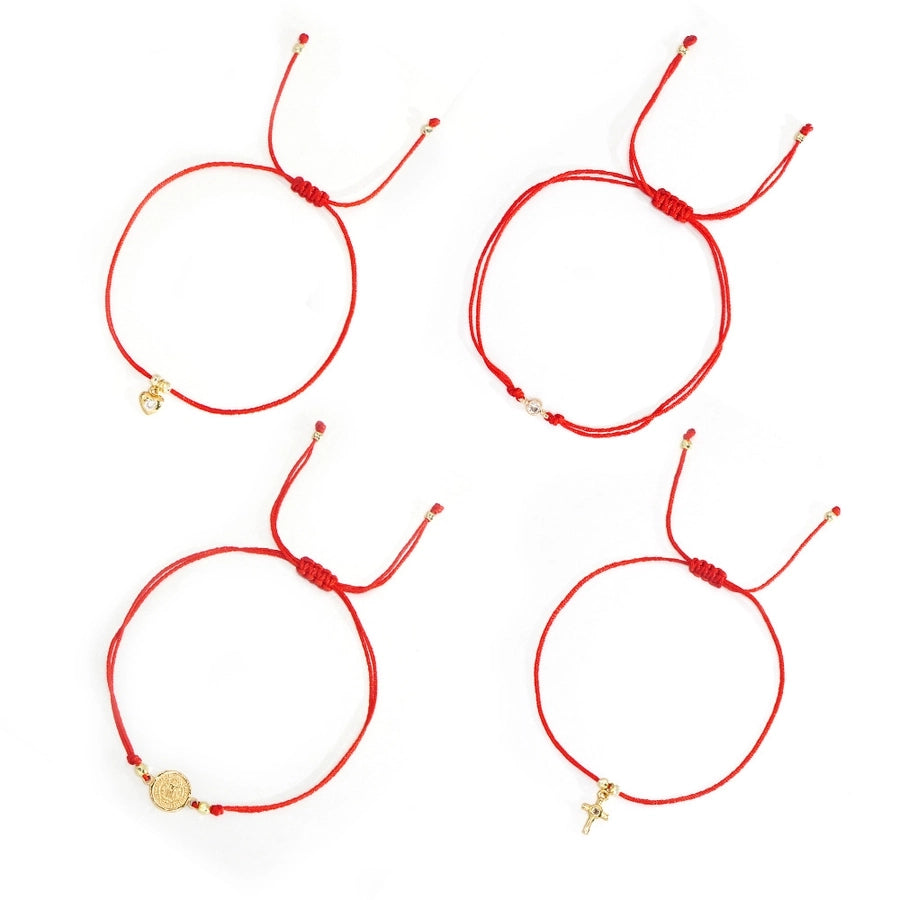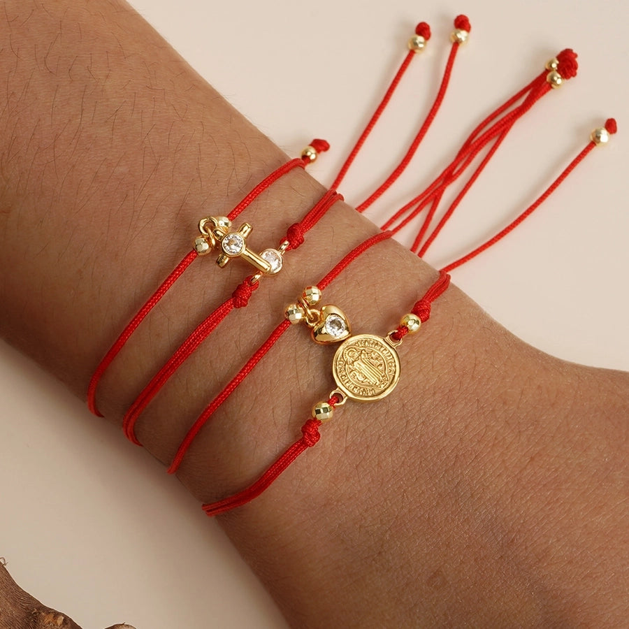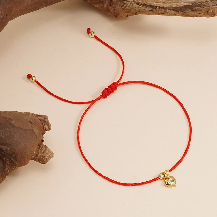 Bohemian Cross Round Heart Shape Zircon Wax line Copper String Bracelets