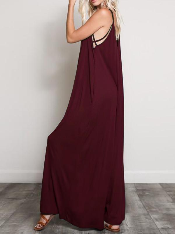 Burgundy&Black Loose Sleeveless Wide Leg Jumpsuits