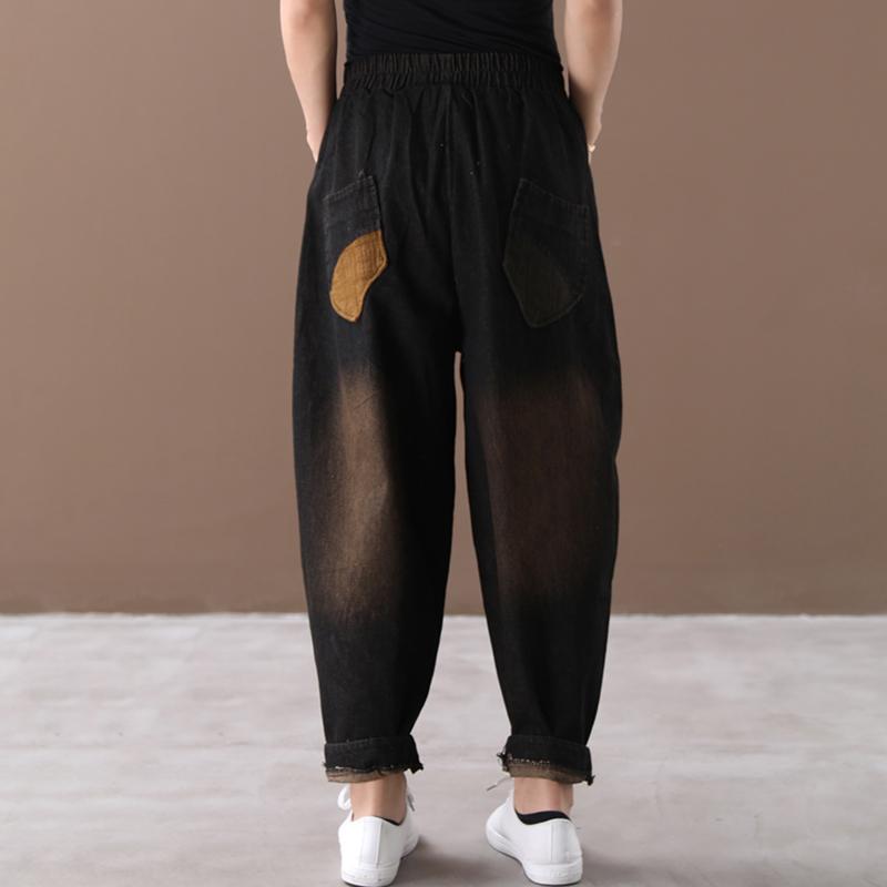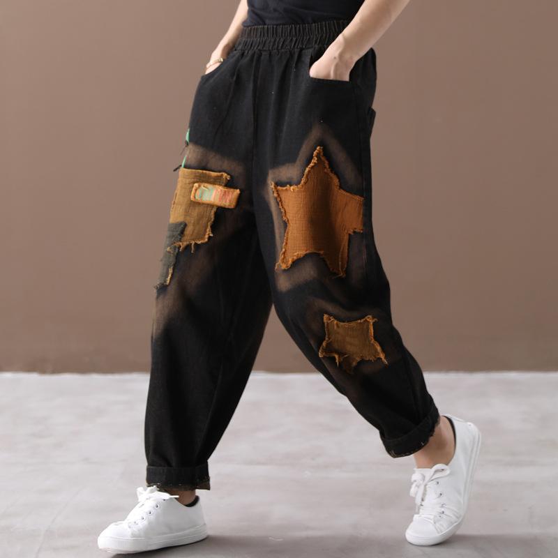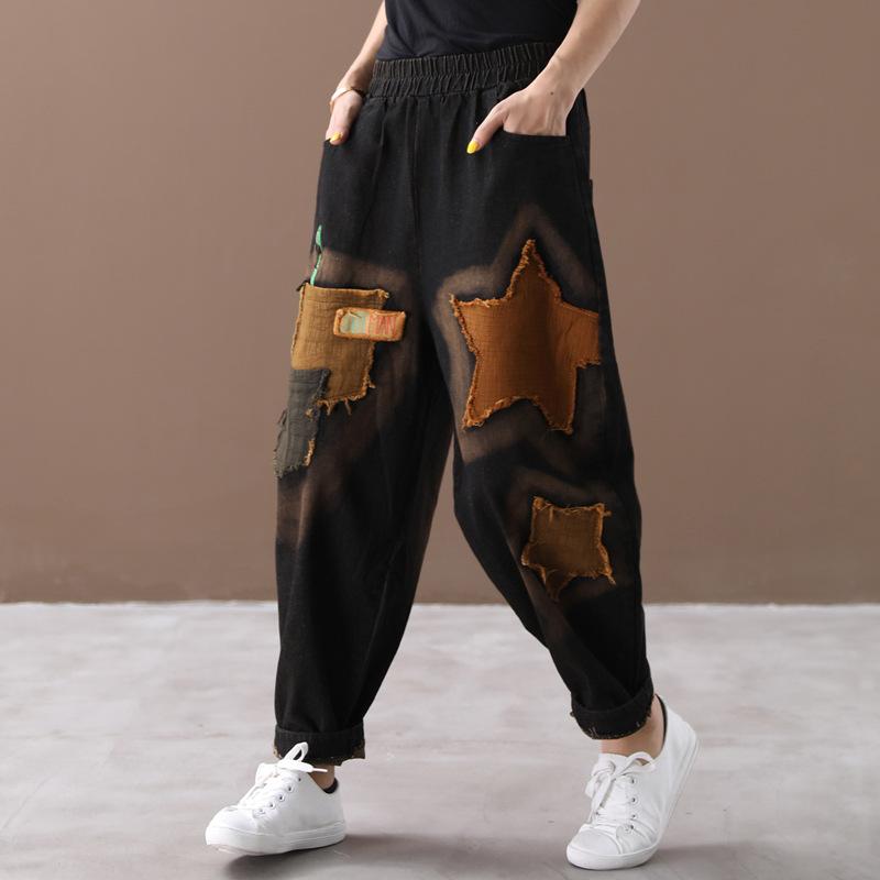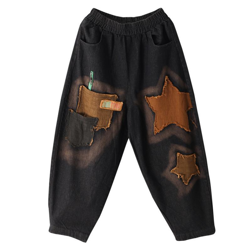 Buykud Applique Stars Retro Casual Loose Harem Jeans