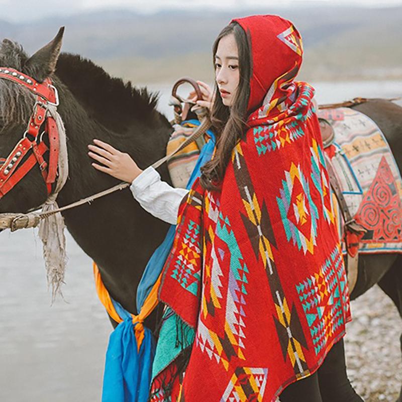 Buykud Autumn Winter Warm Printed Scarf Hooded Cloak