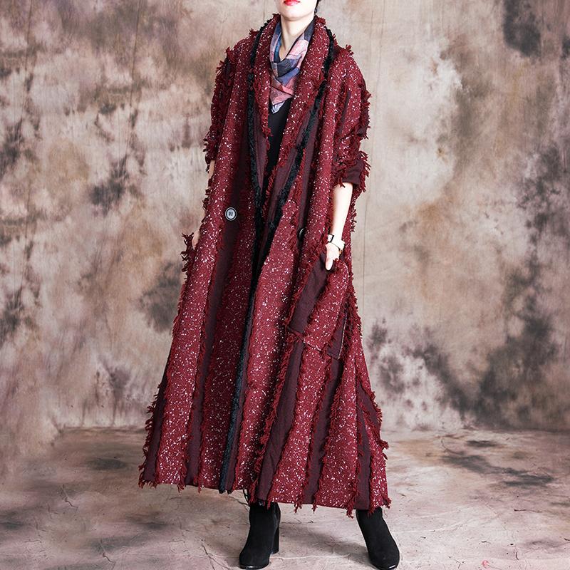 Buykud Burr Stripe Casual Retro Loose Trench Coat