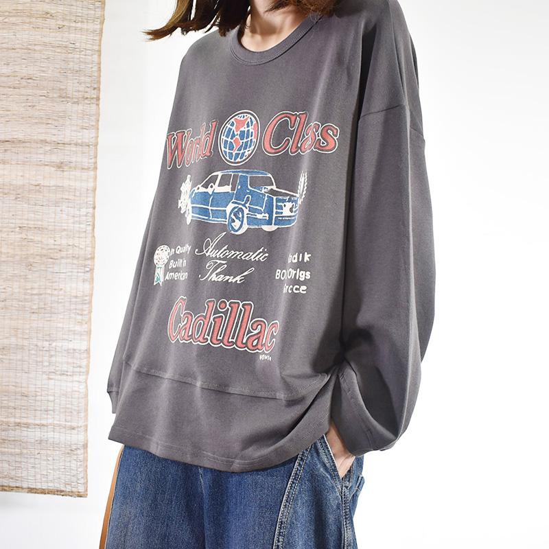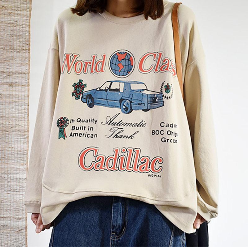 Buykud Casual Loose Cartoon Letters Printed Blouse