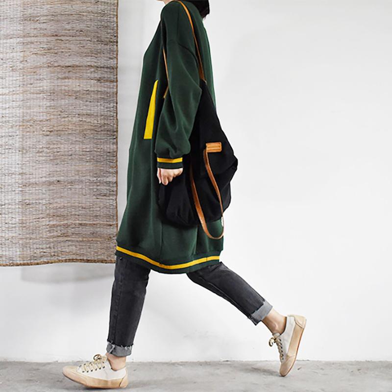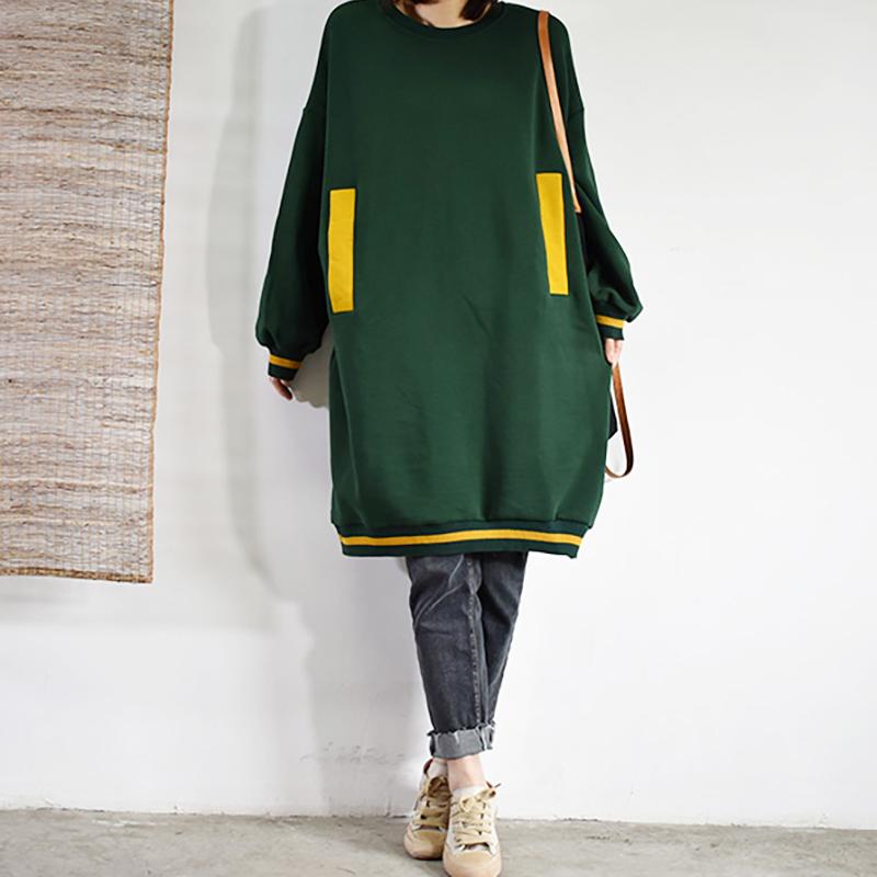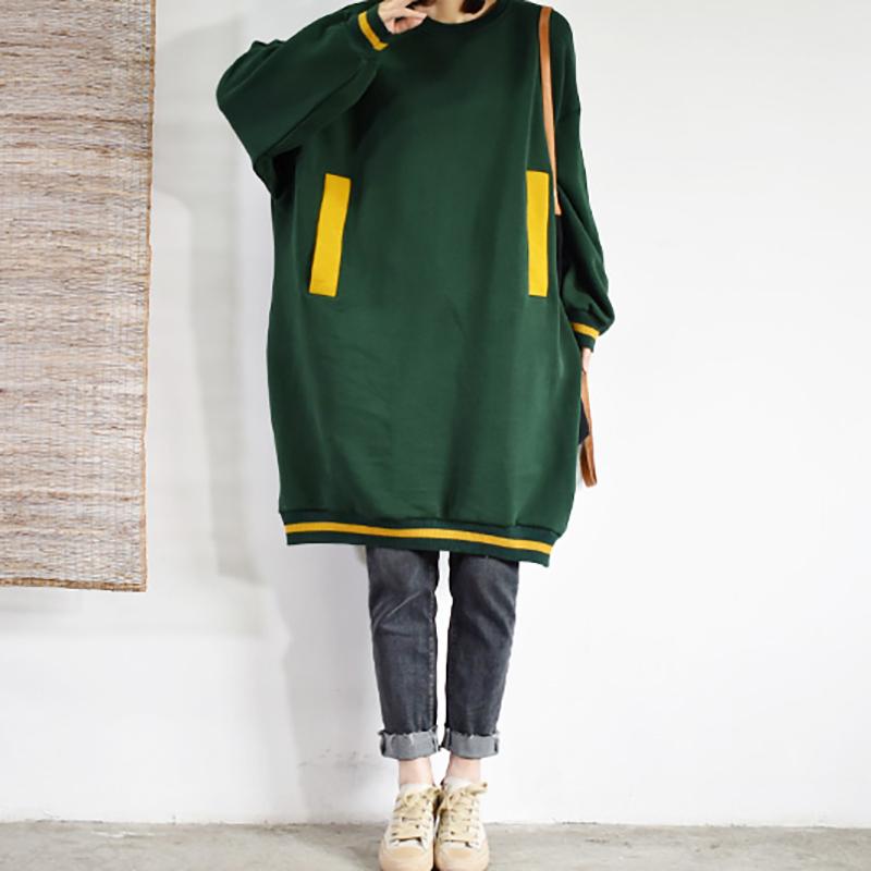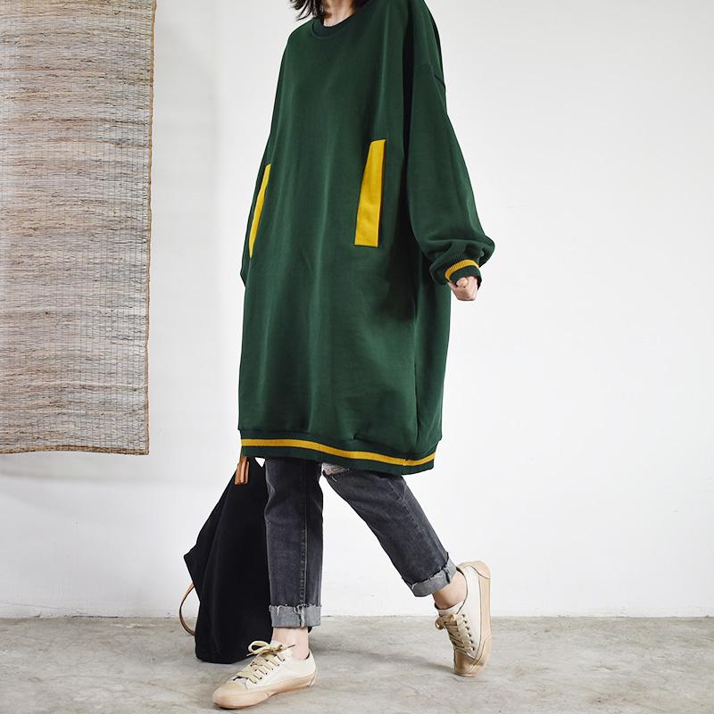 Buykud Casual Loose Pullover Solid Color O-neck Dress
