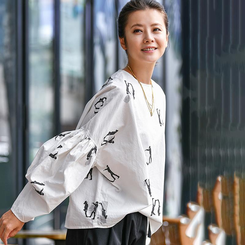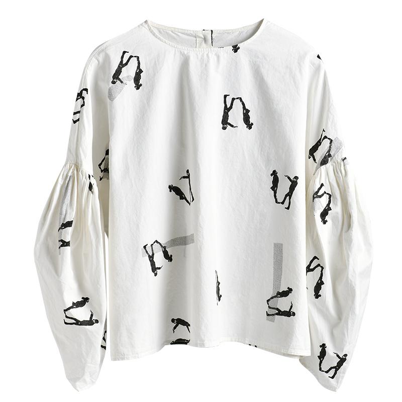 Buykud Character Print Lantern Sleeve Casual Blouse