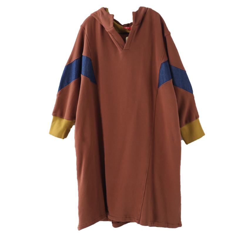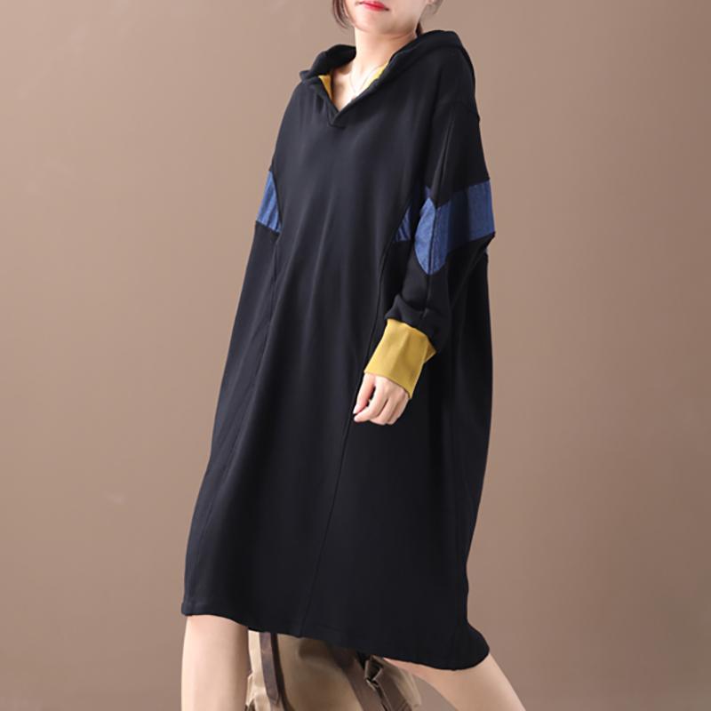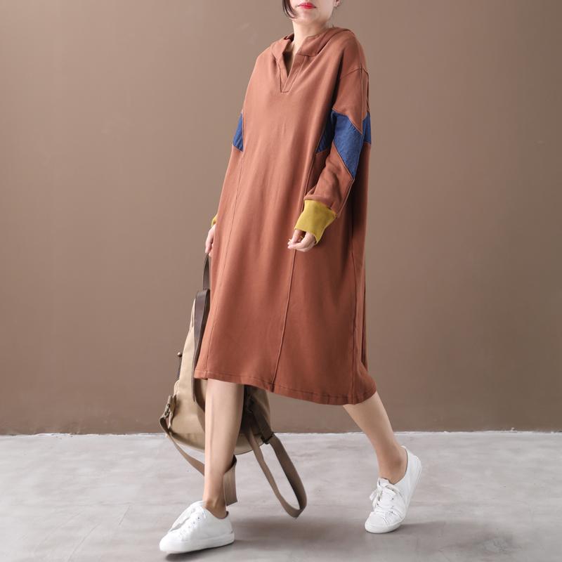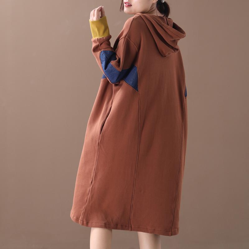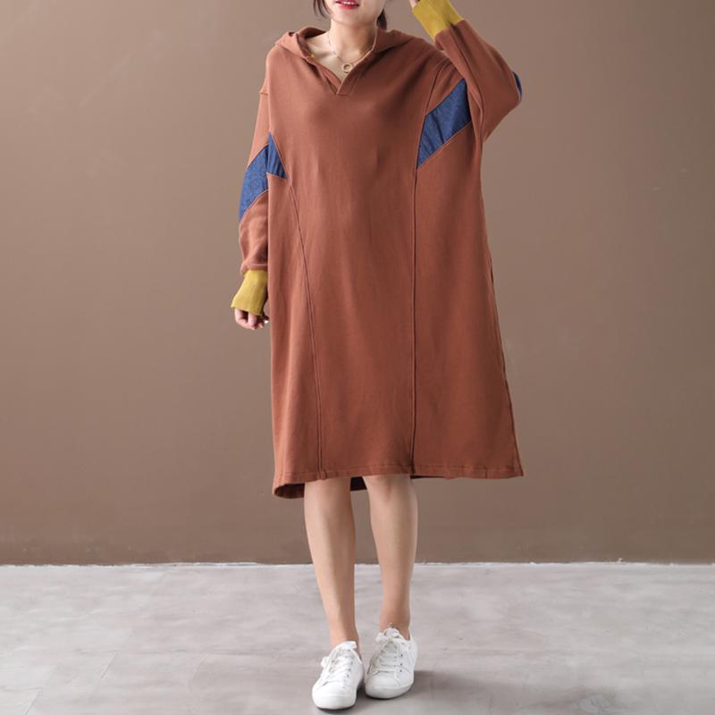 Buykud Color Matching Comfortable Loose Hooded Dress