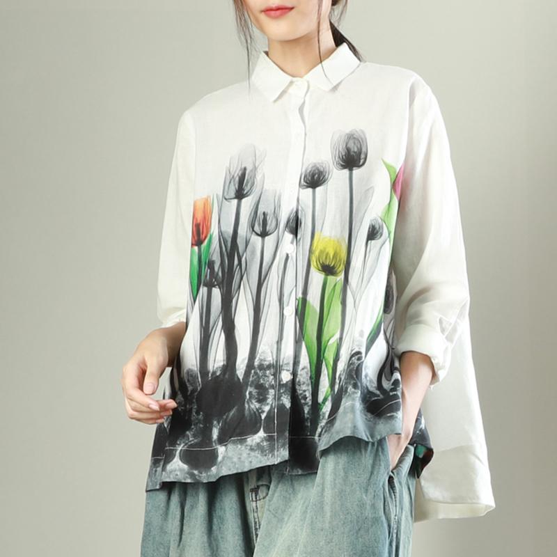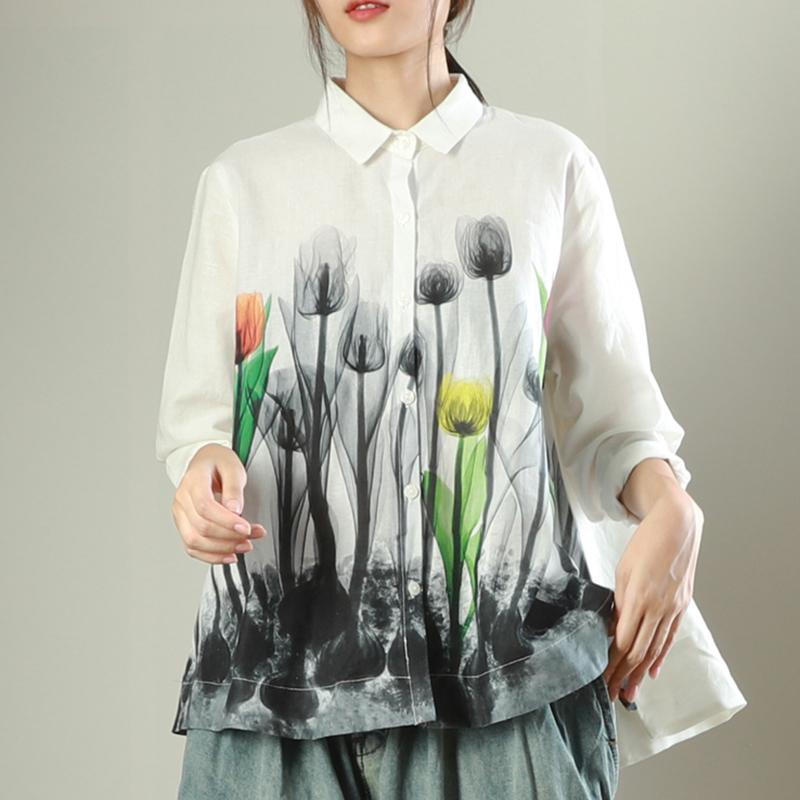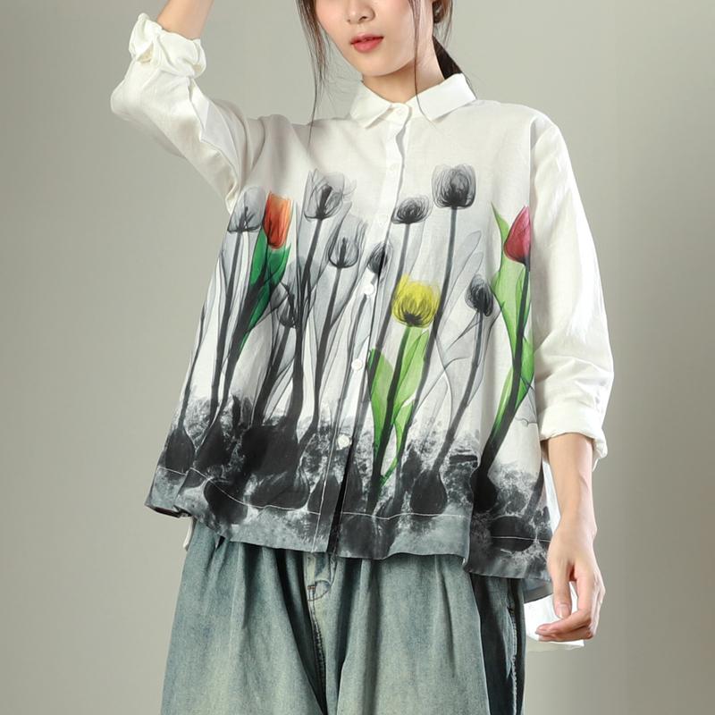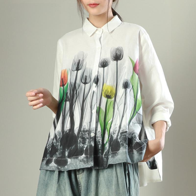 Buykud Elegant Ink Flower Casual Single-breasted Shirt