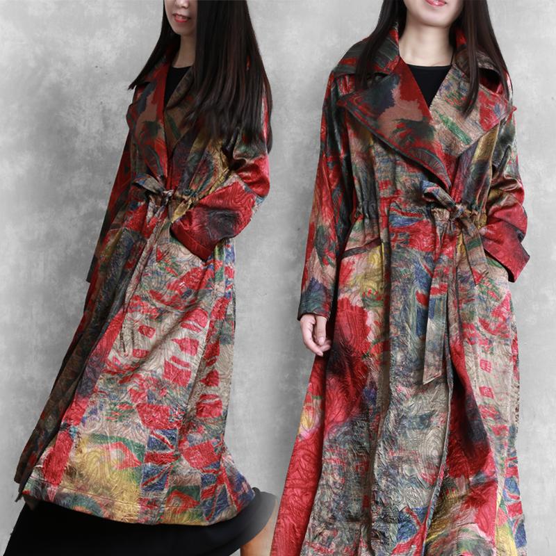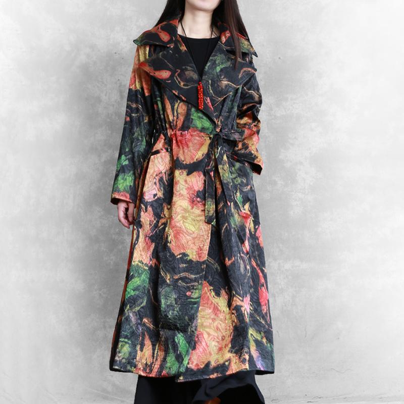 Buykud Fashion Printed Lacing Casual Loose Trench Coat