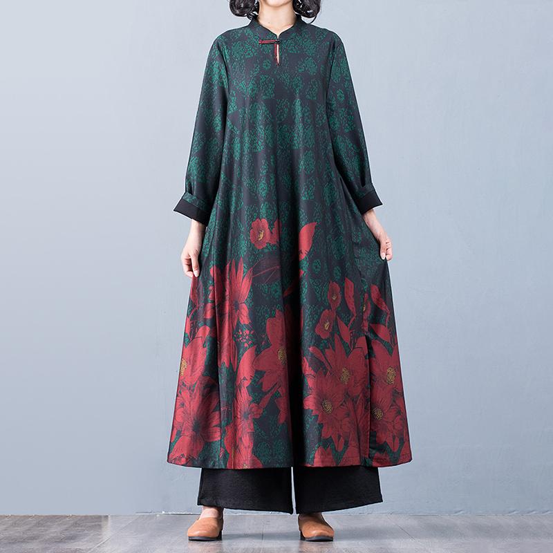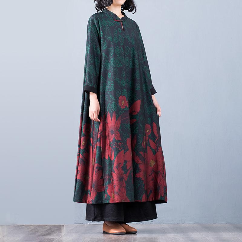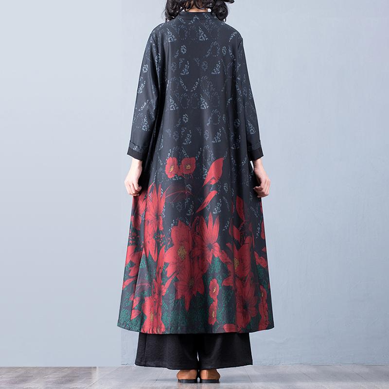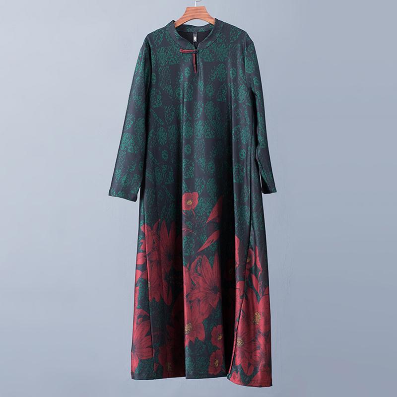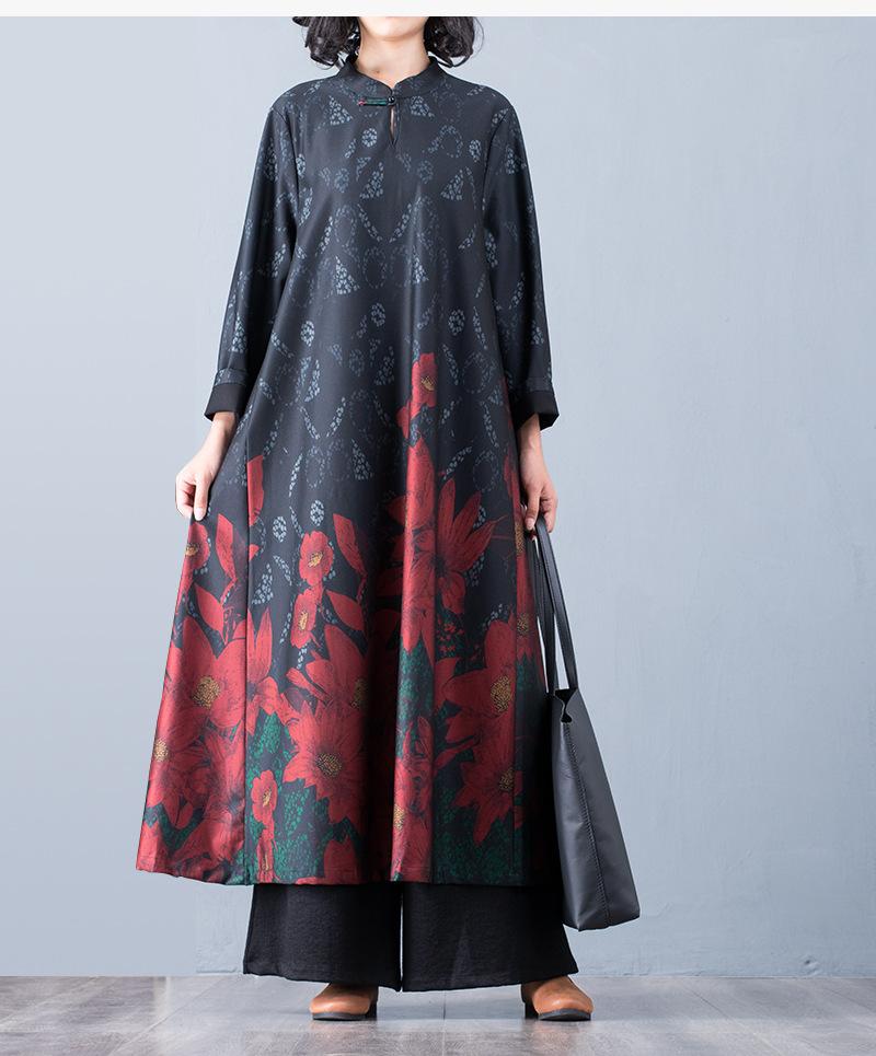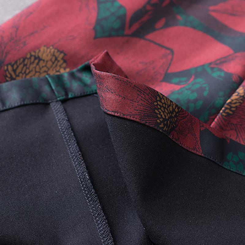 Buykud Floral Printed Casual Retro Soft Silky Dress