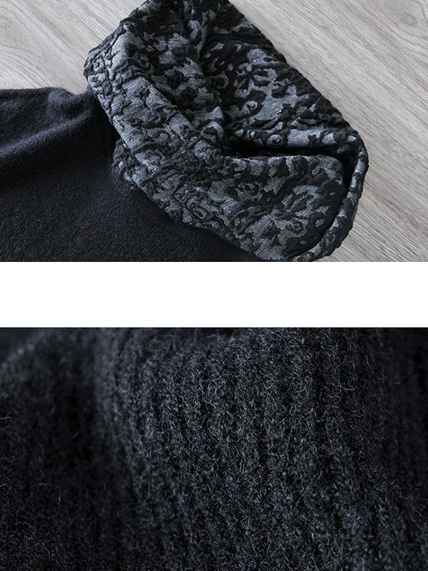 Buykud Jacquard Neckline Winter Solid Color Turtleneck Sweater