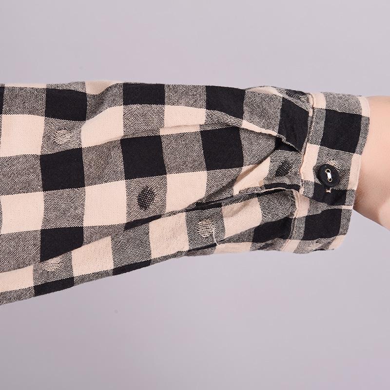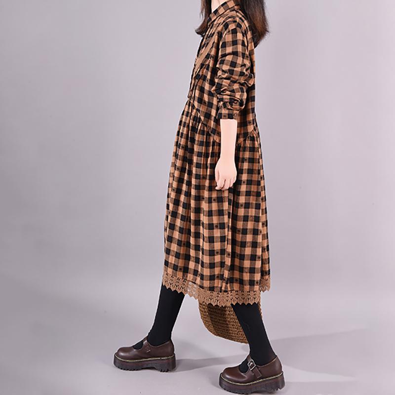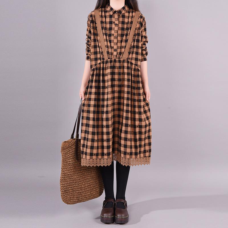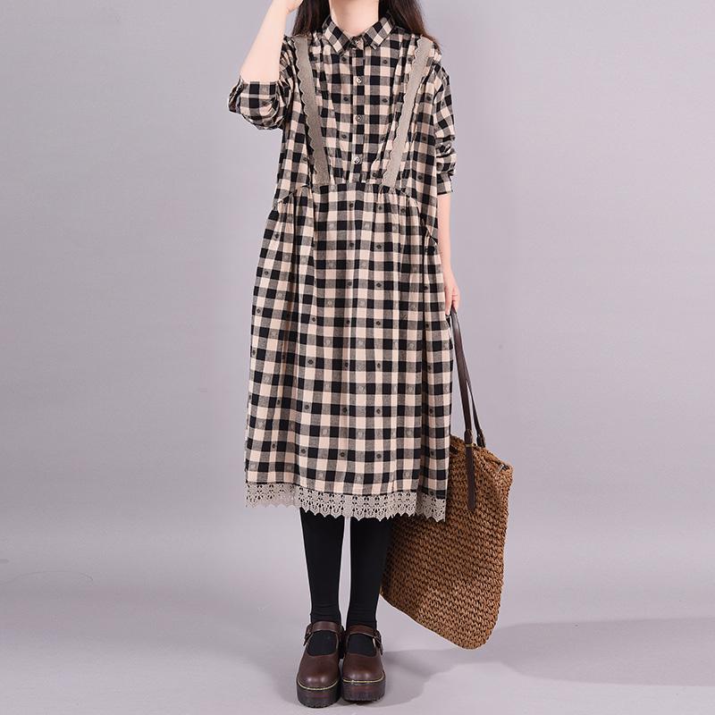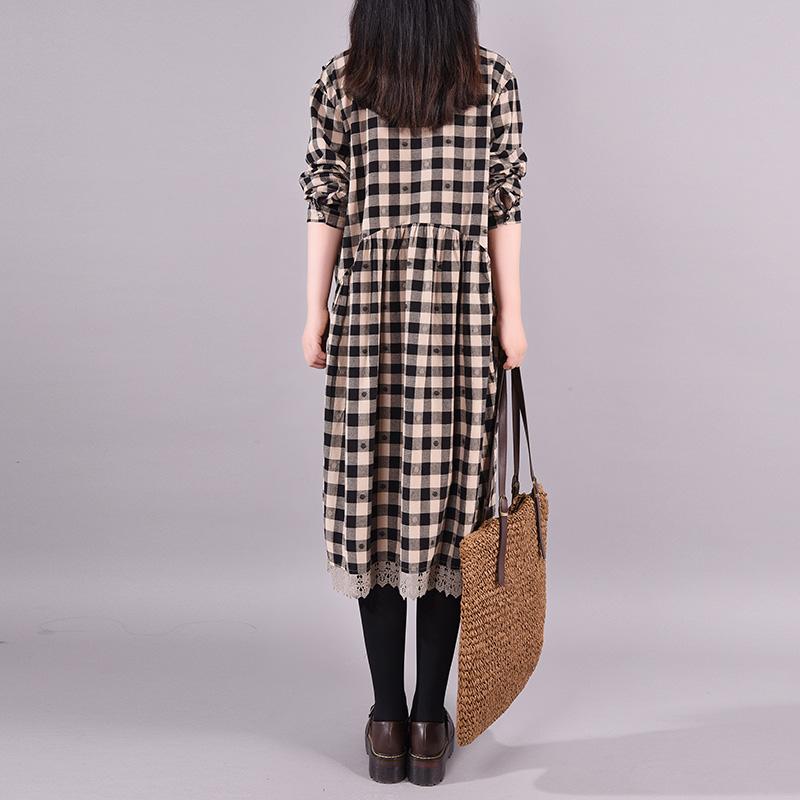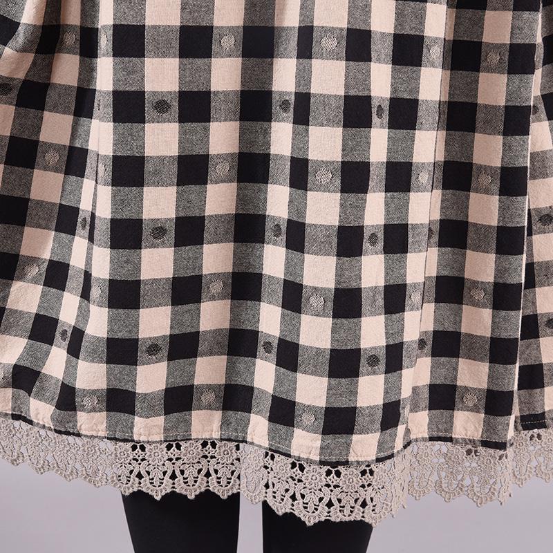 Buykud Lace Spliced Plaid Dot Loose Casual Dress