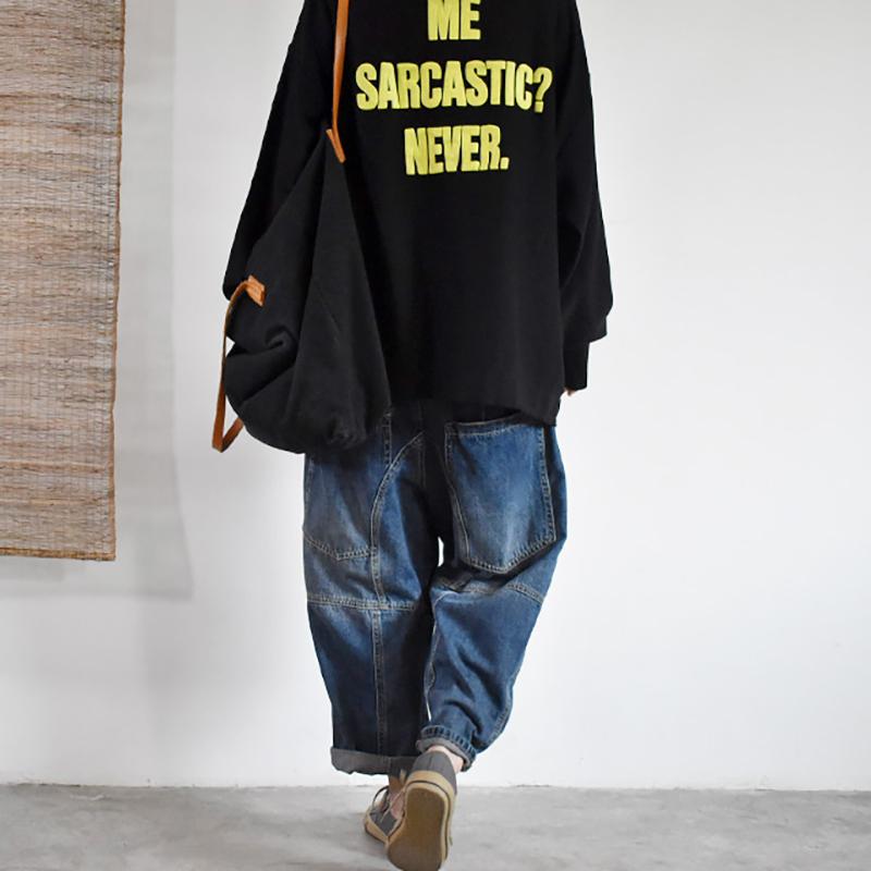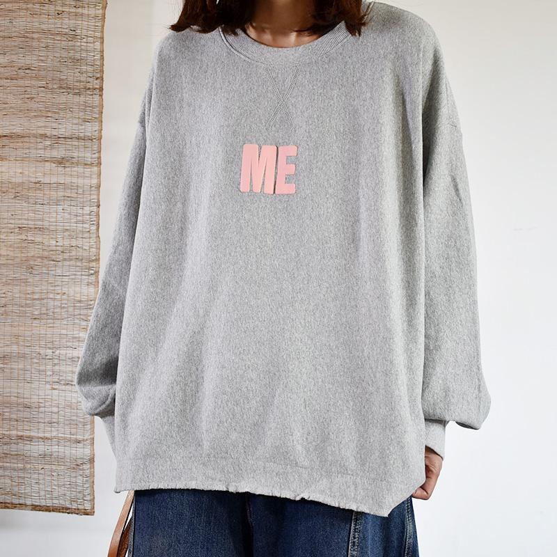 Buykud Letter Printed Loose Long Sleeve Blouse