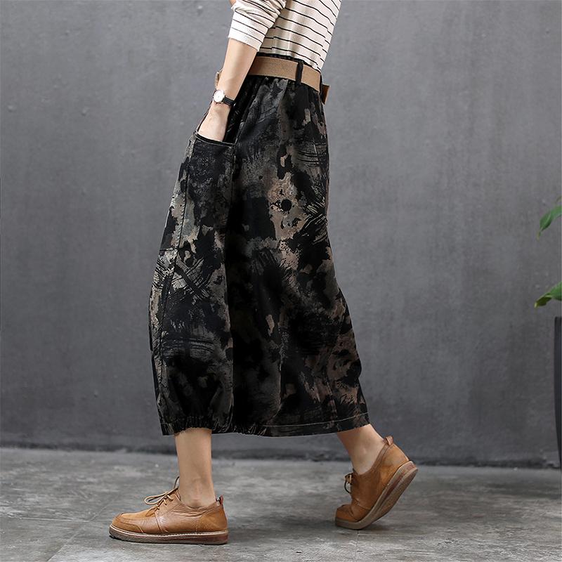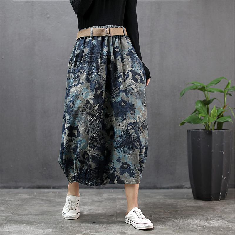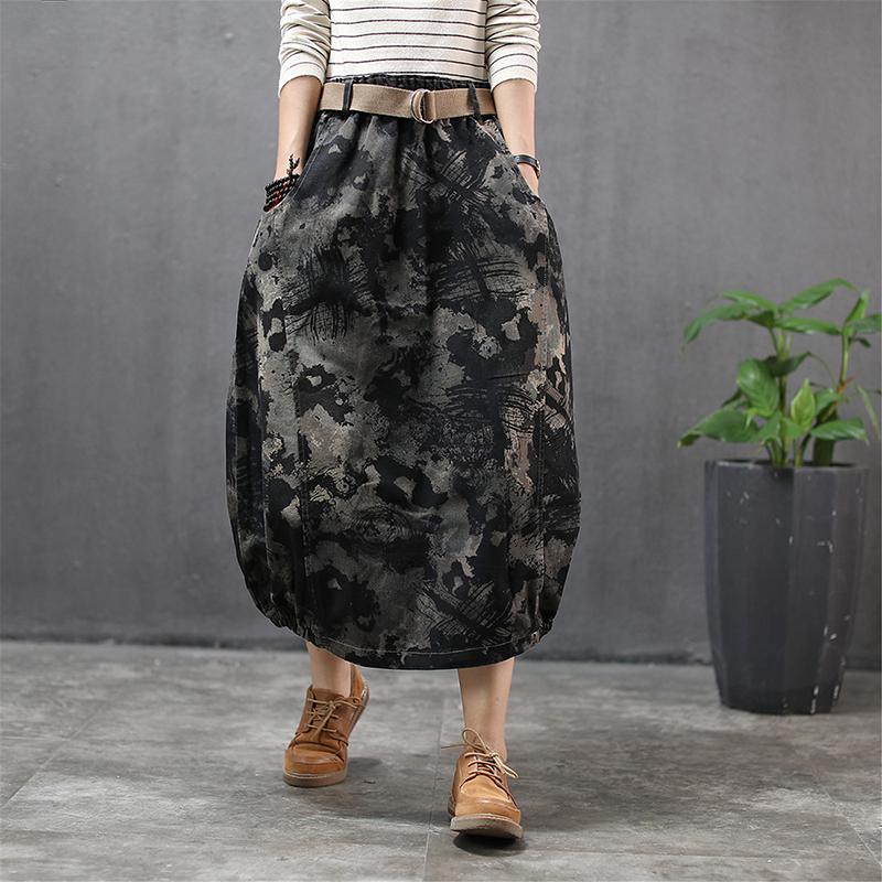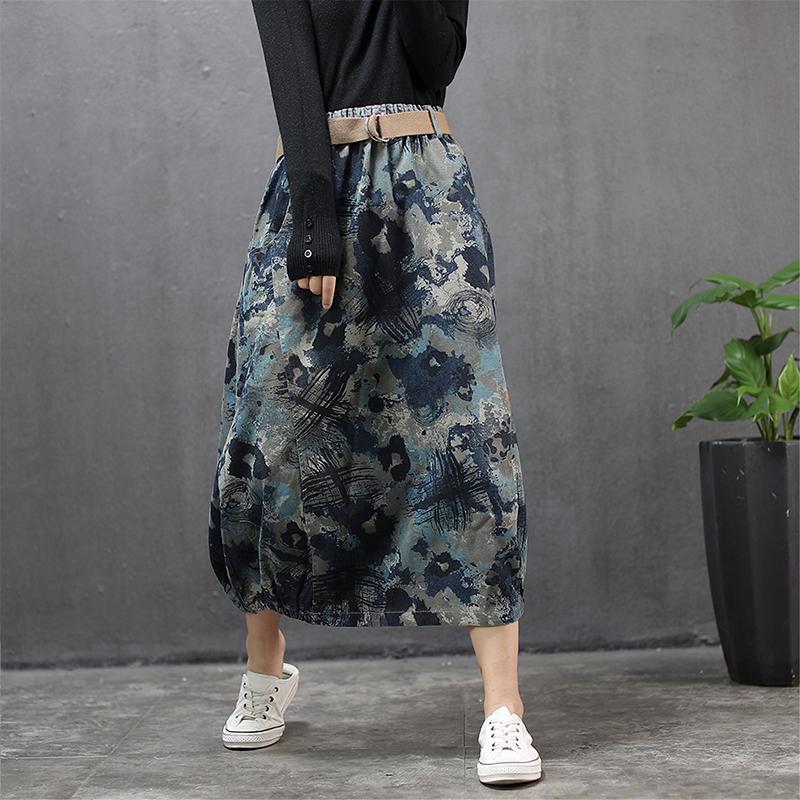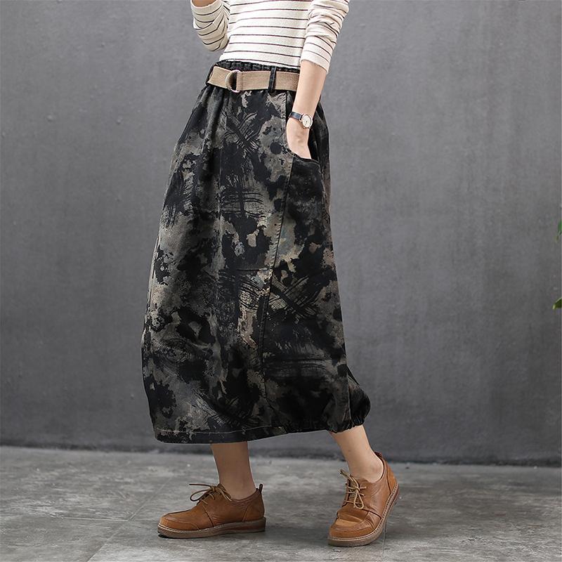 Buykud Literary Abstract Printed Casual Loose Skirt