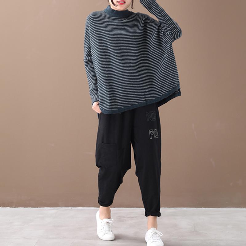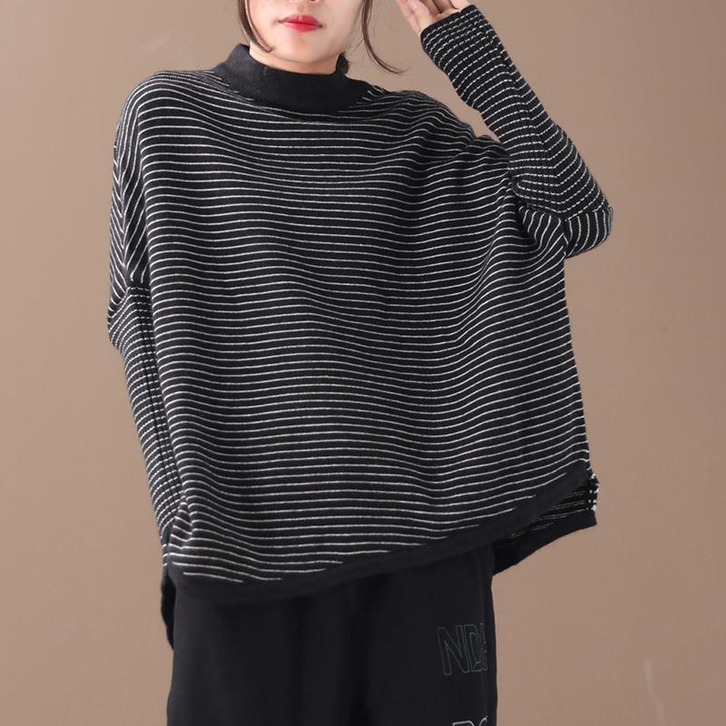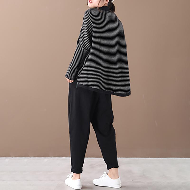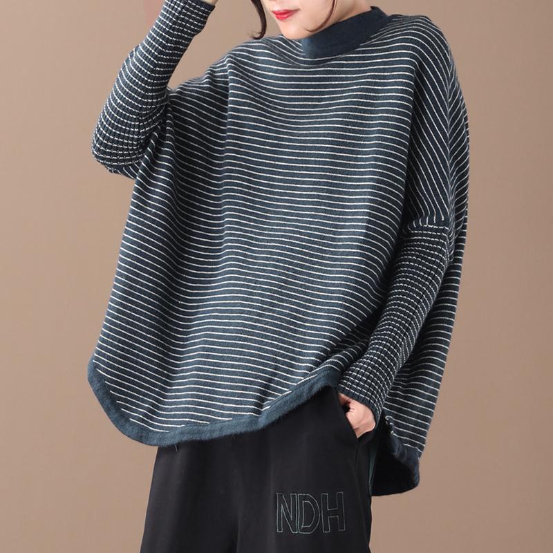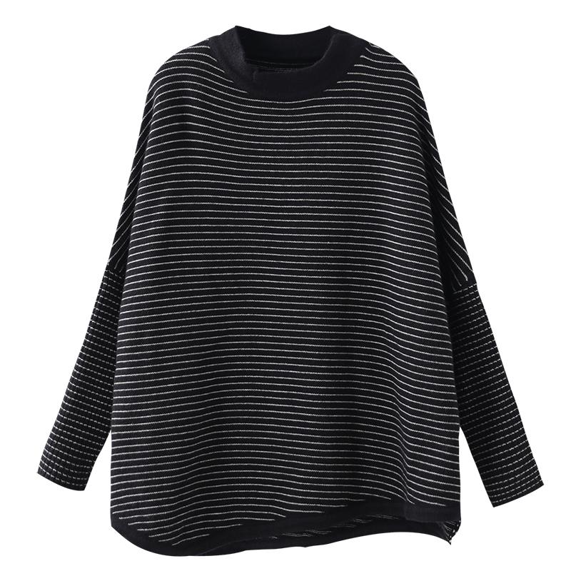 Buykud Loose Literary Half-high Collar Striped Knitted Shirt