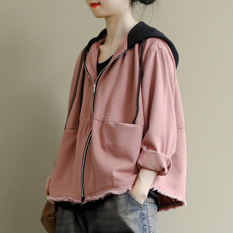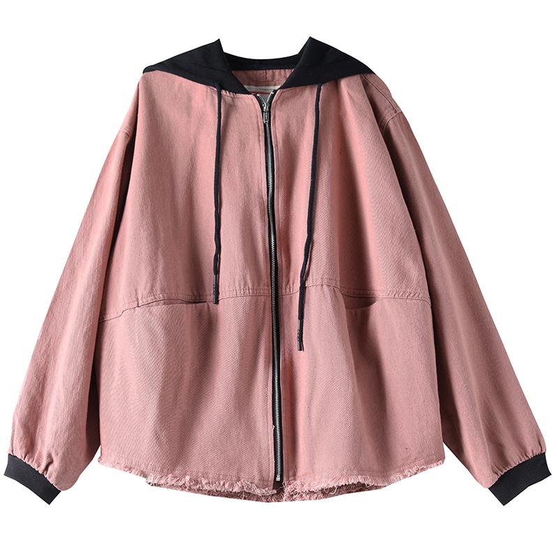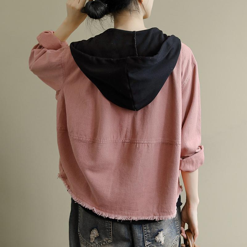 Buykud Natural Burr Hem Pure Color Hooded Coat