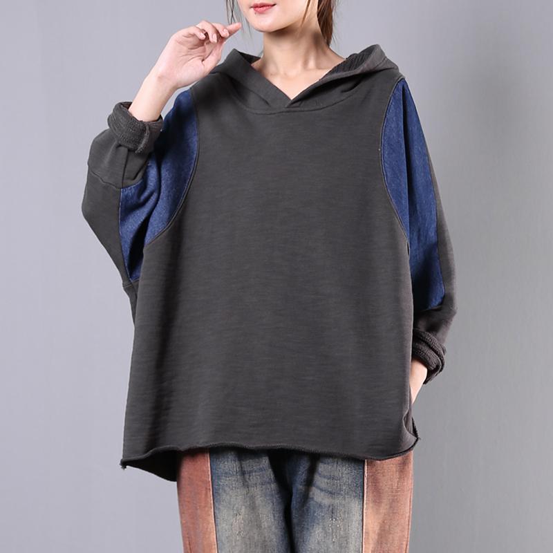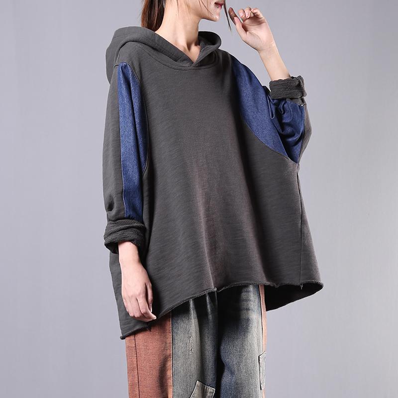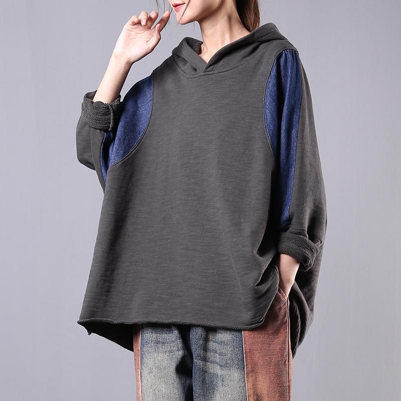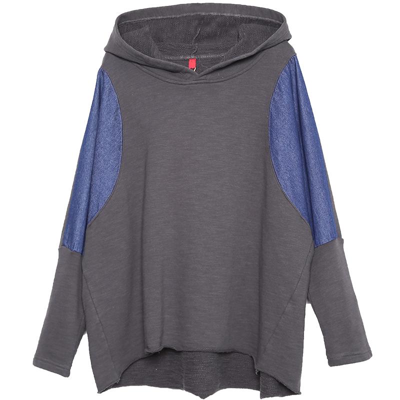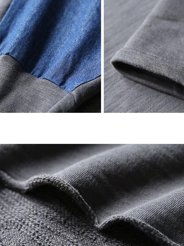 Buykud Patchwork Contrast Color Casual Loose Hoodie