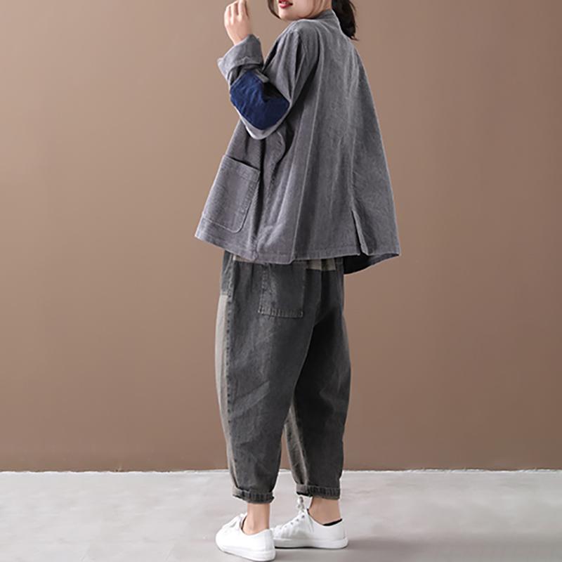 Buykud Patchwork Corduroy Single Breasted Autumn Coat