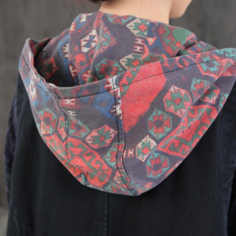 Buykud Patchwork Printed Casual Loose Hooded Coat