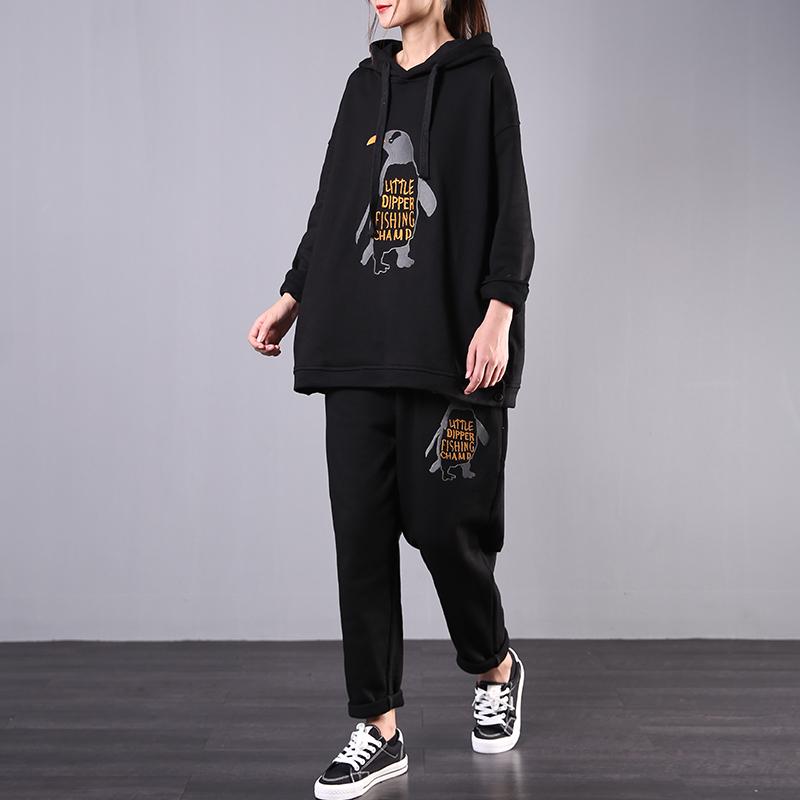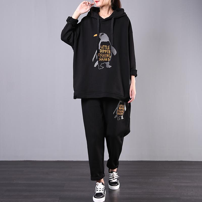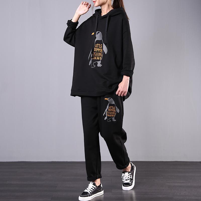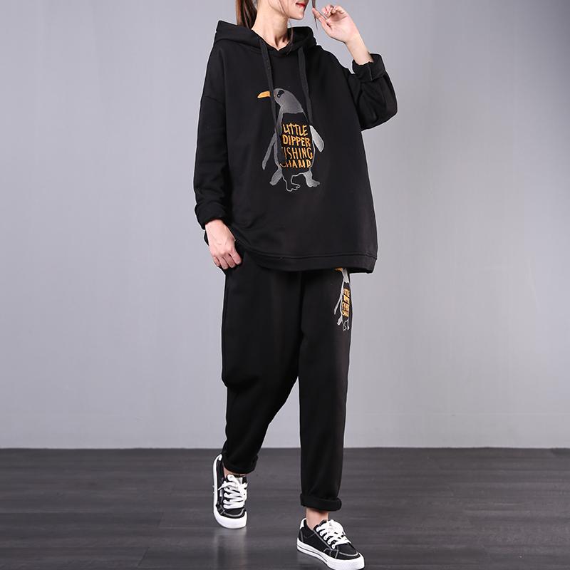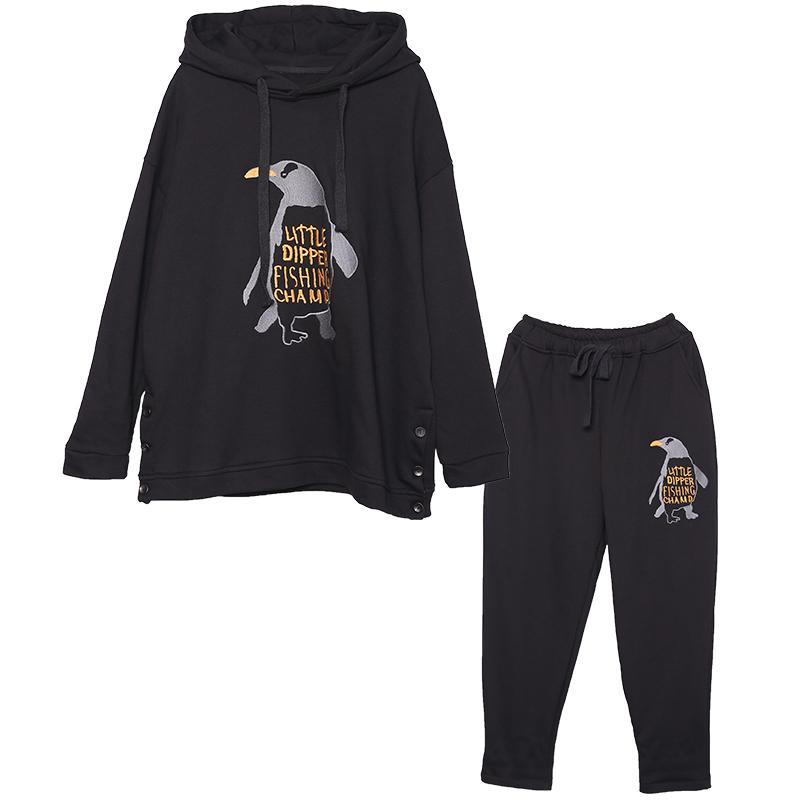 Buykud Penguin Embroidery Casual Two Piece Suit