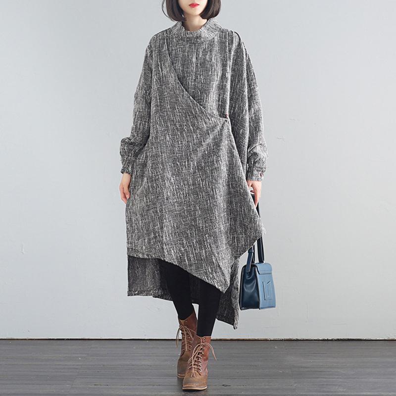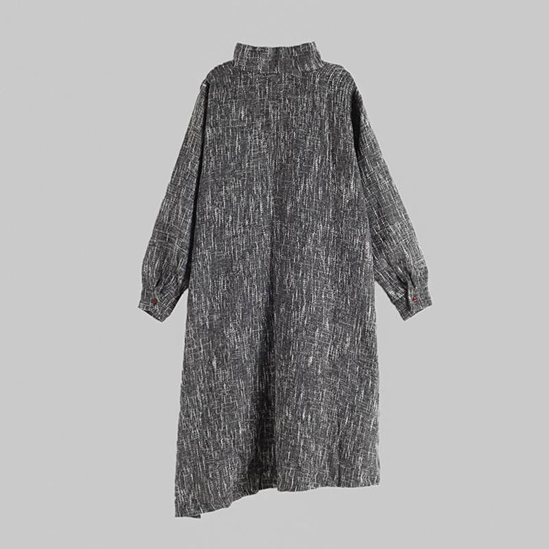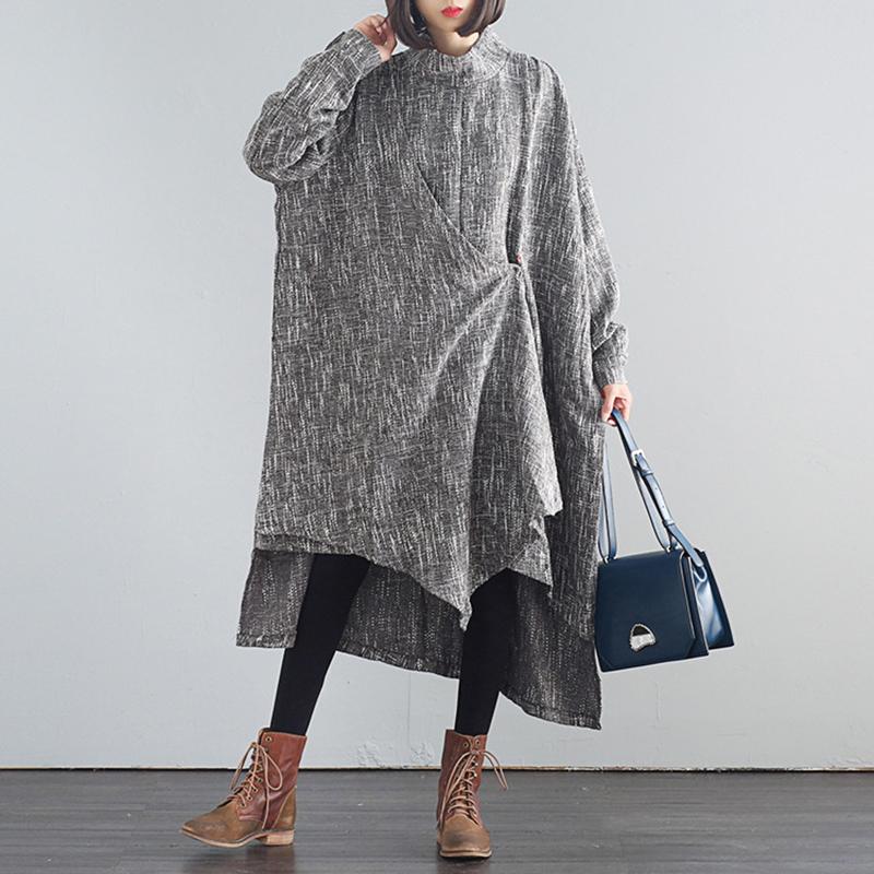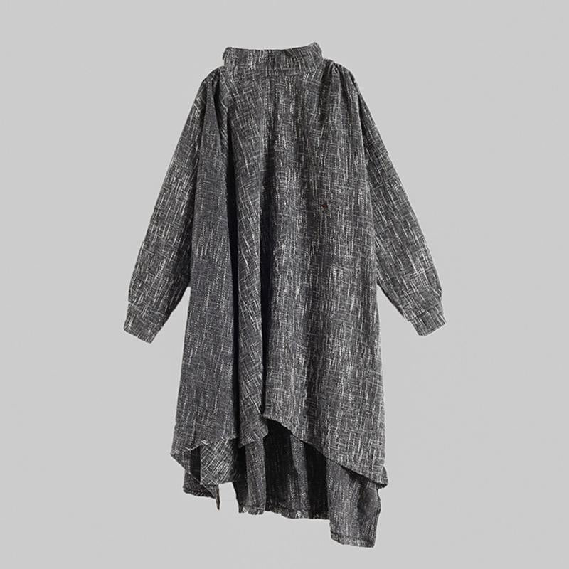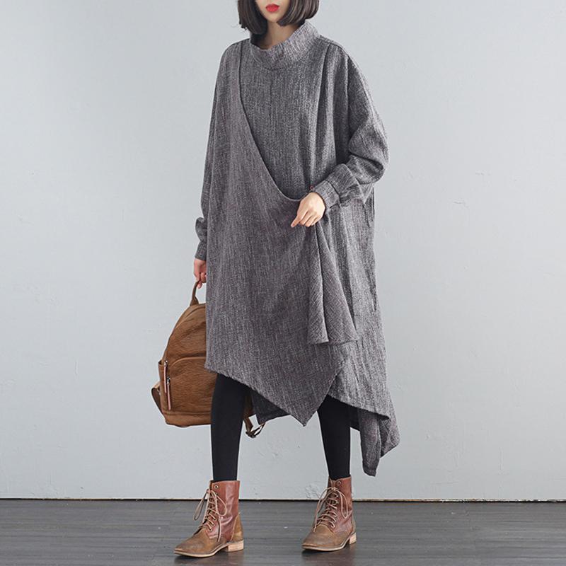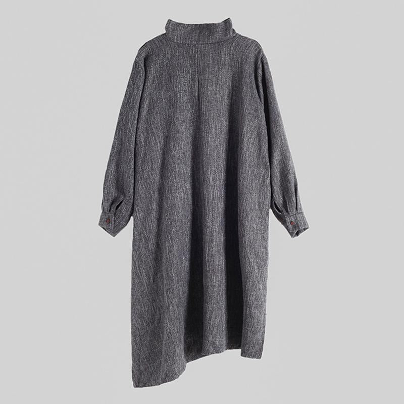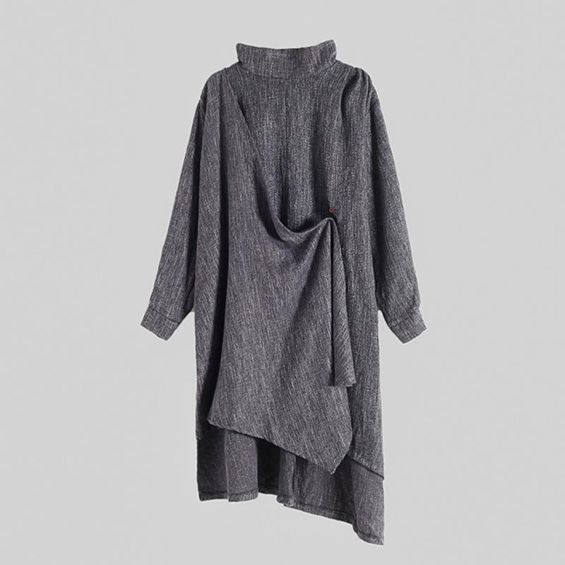 Buykud Pure Color Turtleneck Irregular Casual Dress