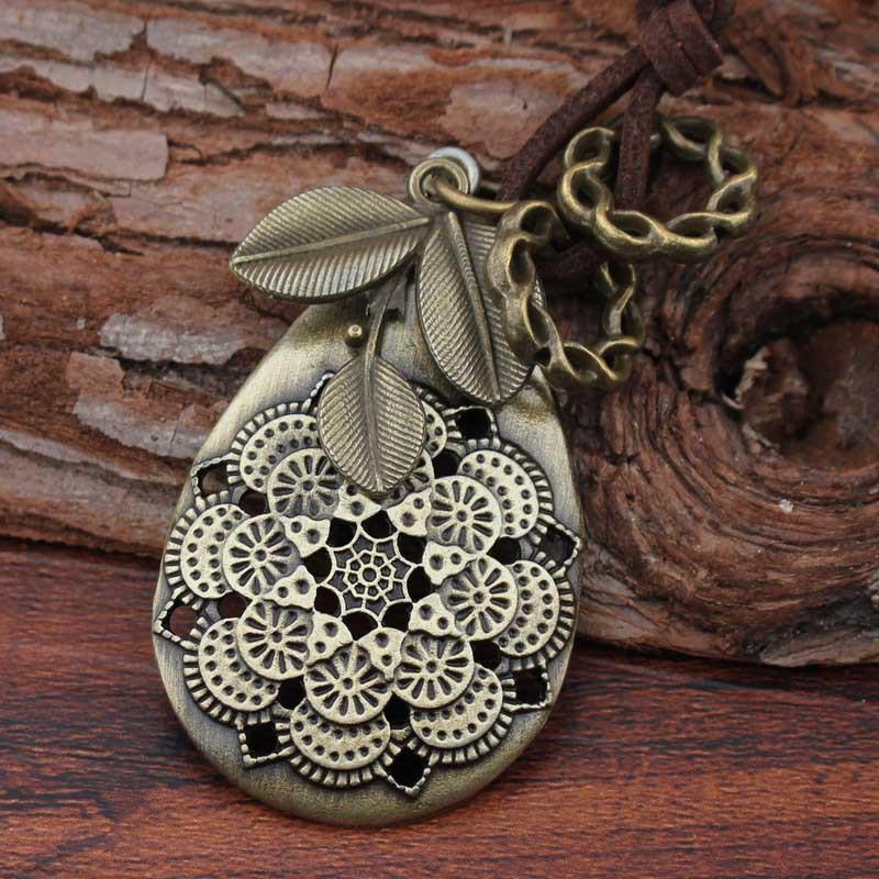 Buykud Retro Petal Clover Pendant Sweater Chain Necklace