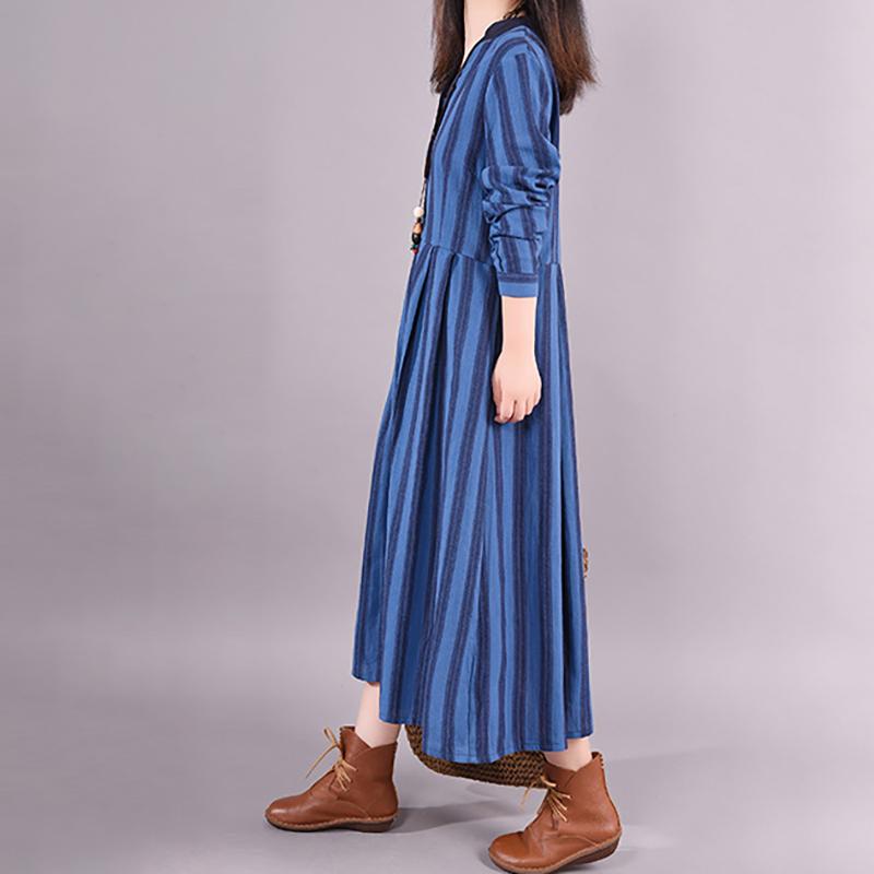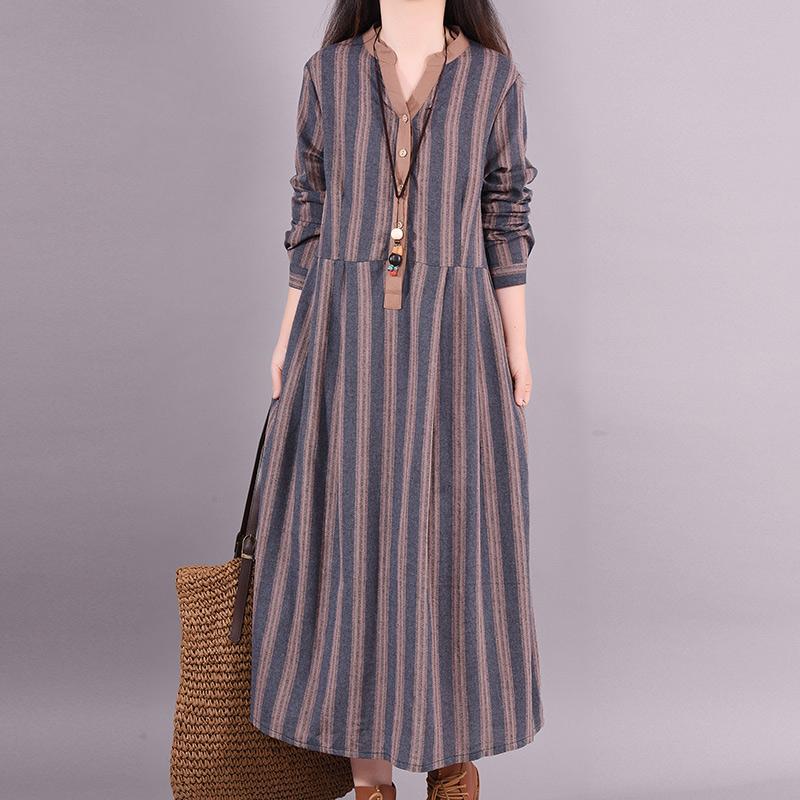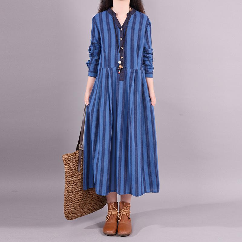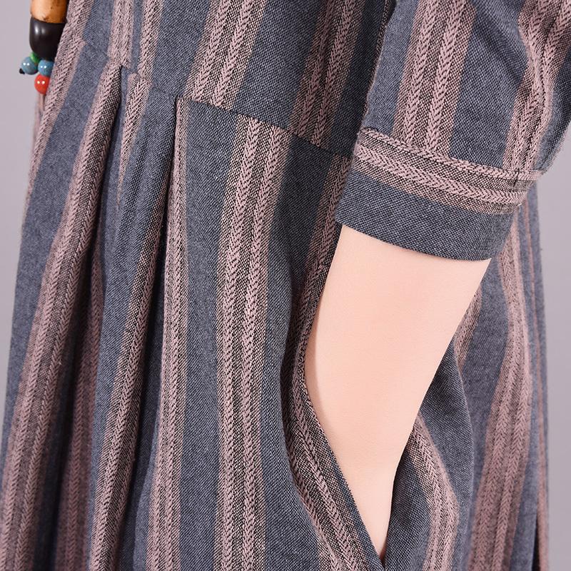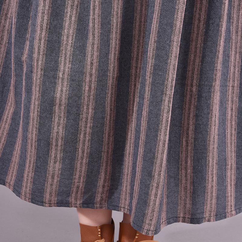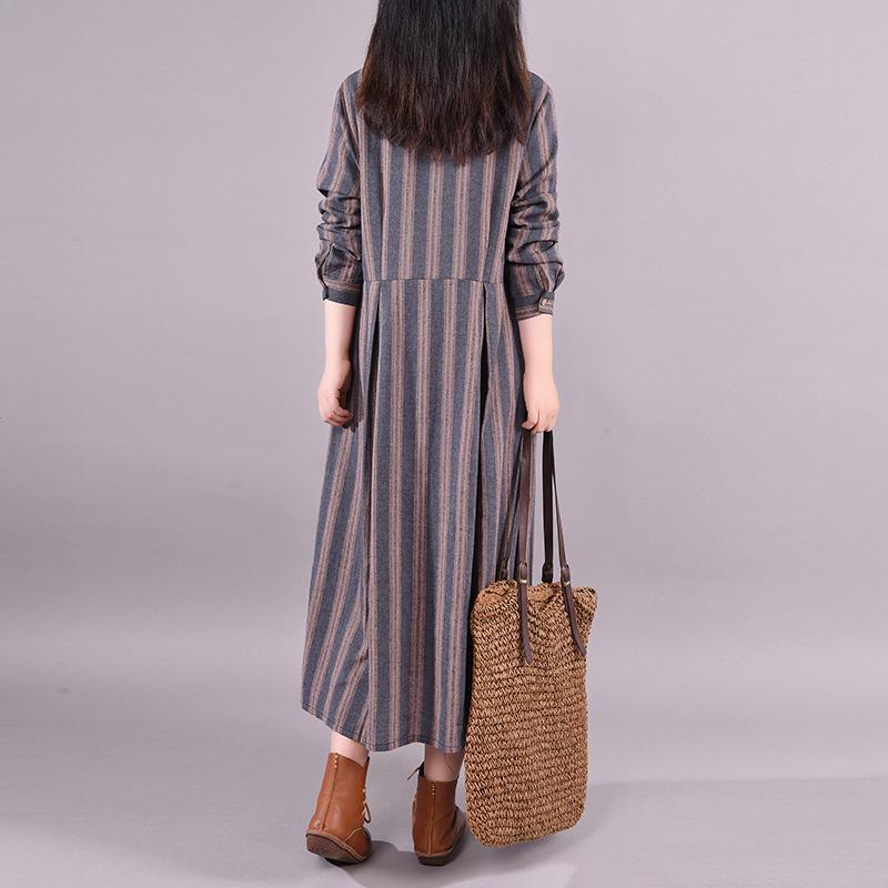 Buykud Retro Striped Folded Comfortable Loose Dress