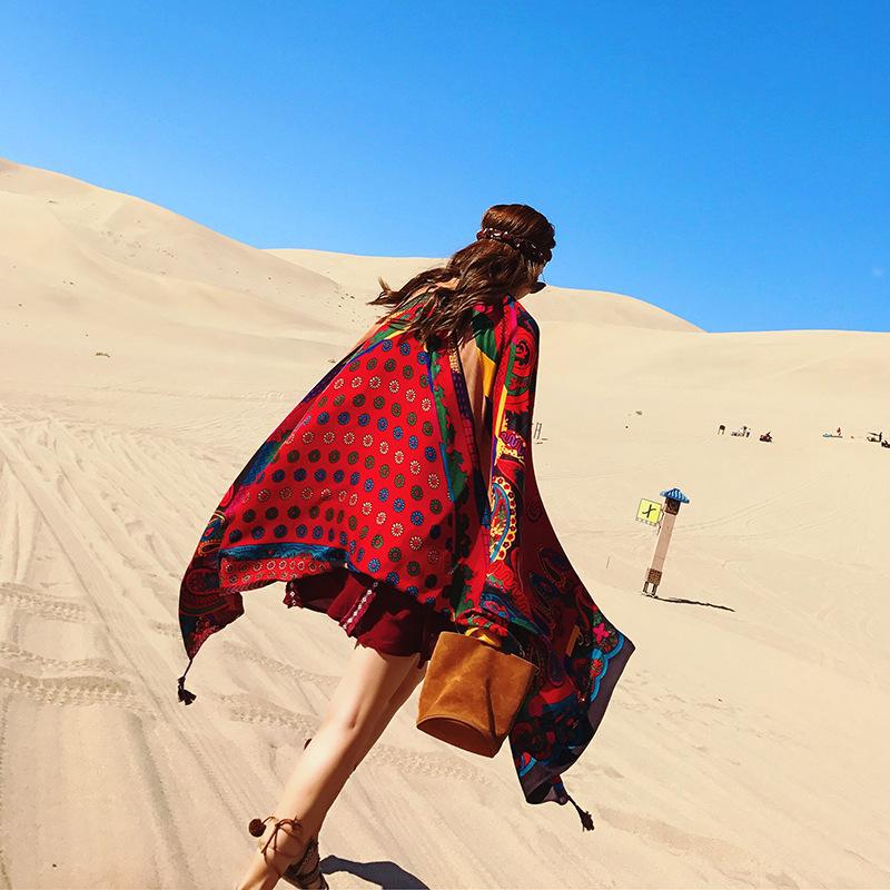 Buykud Seaside Vacation Printed Tassel Sunscreen Scarf