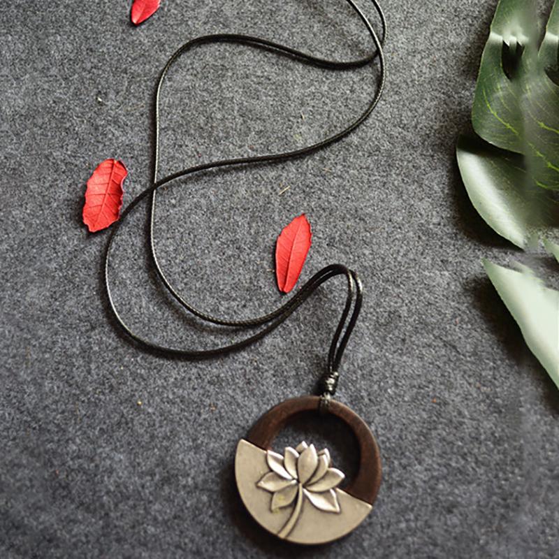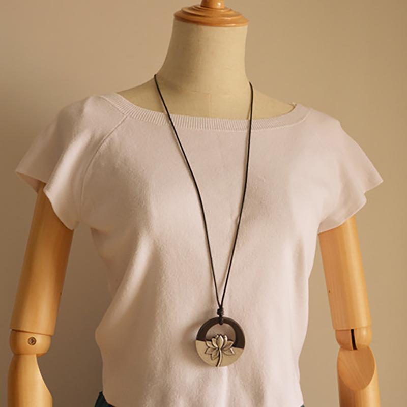 Buykud Simple Alloy Lotus Sweater Chain Long Necklace