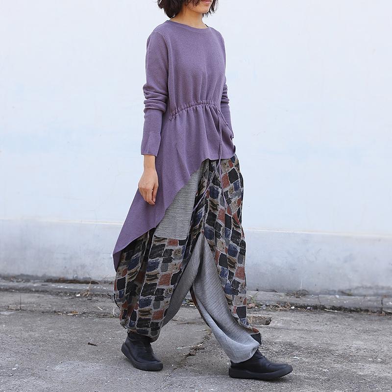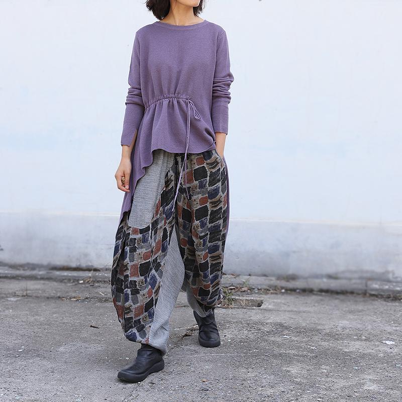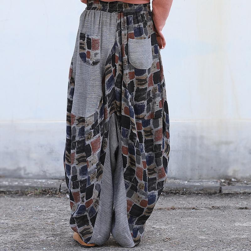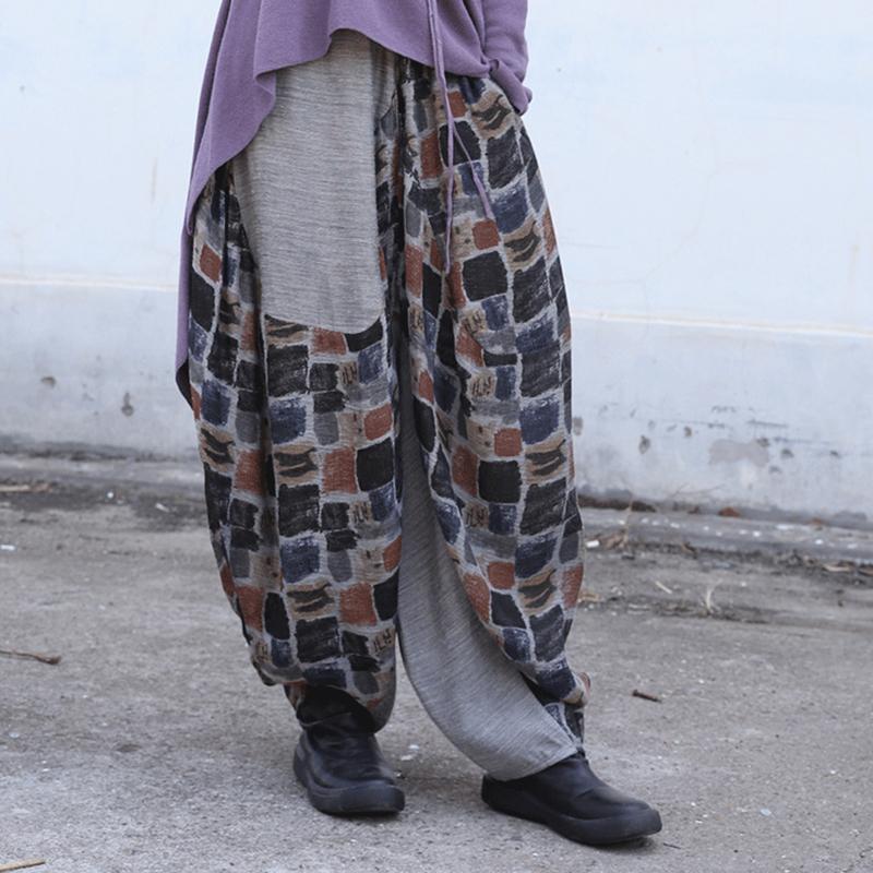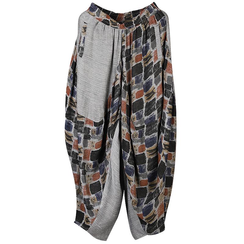 Buykud Spliced Colored Plaid Loose Harem Pants