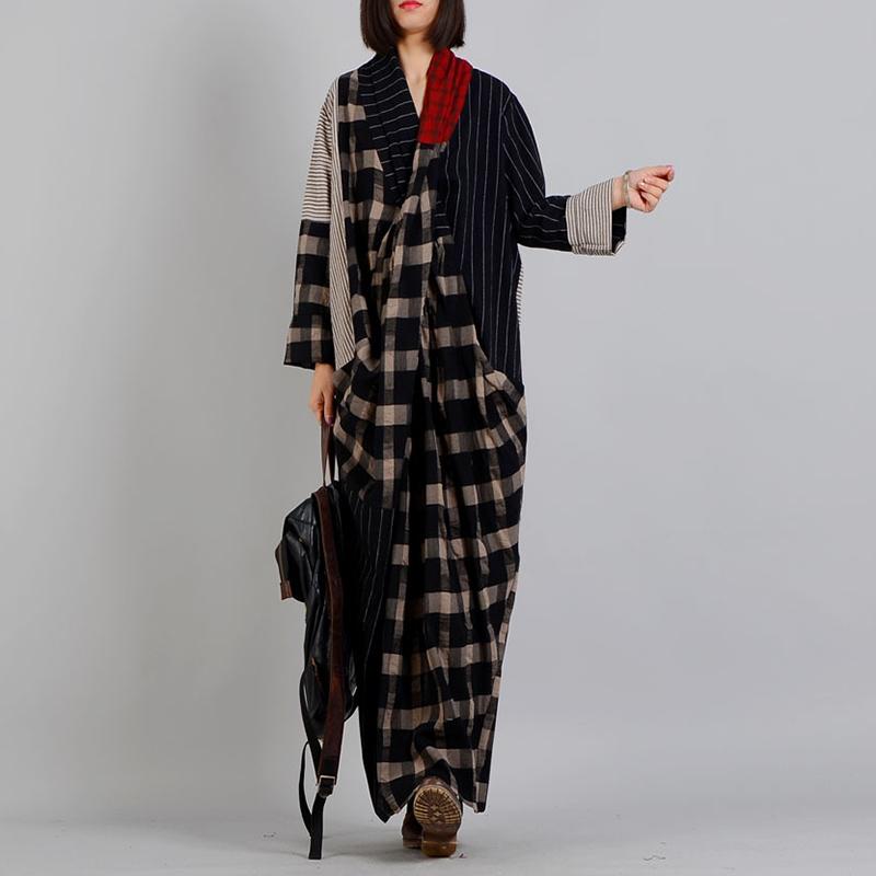 Buykud Stripe And Plaid Irregular Spliced Retro Loose Dress