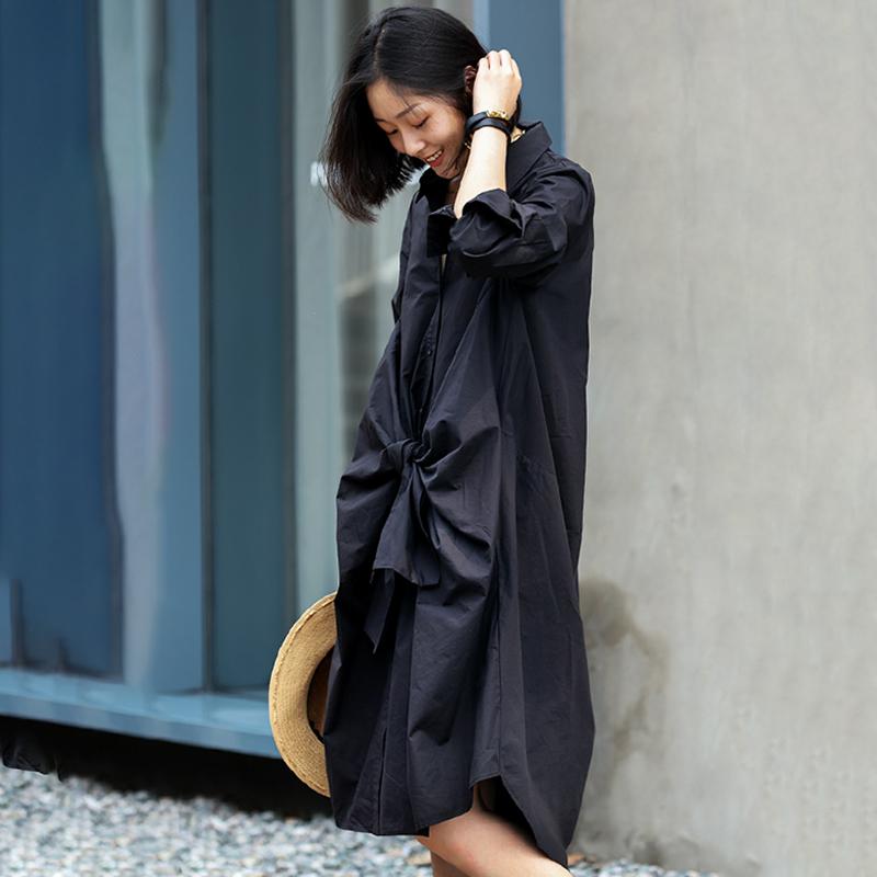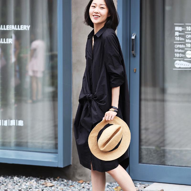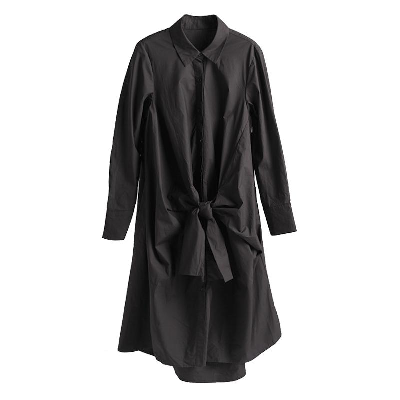 Buykud Turn-down Collar Lacing Bowknot Casual Shirt