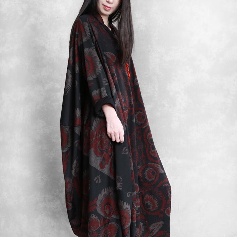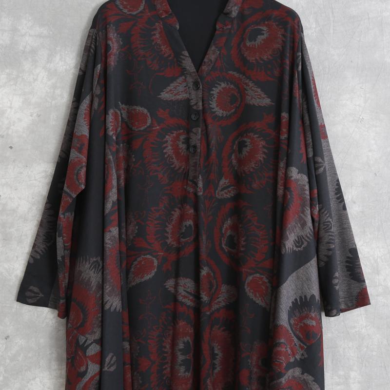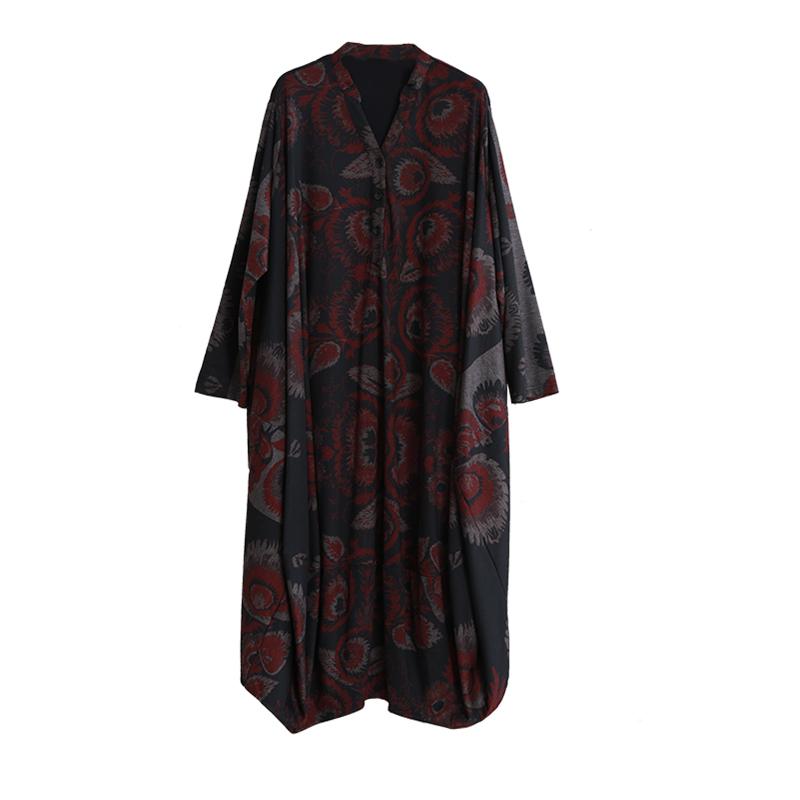 Buykud V-neck Printed Casual Ultra-loose O-Type Dress
