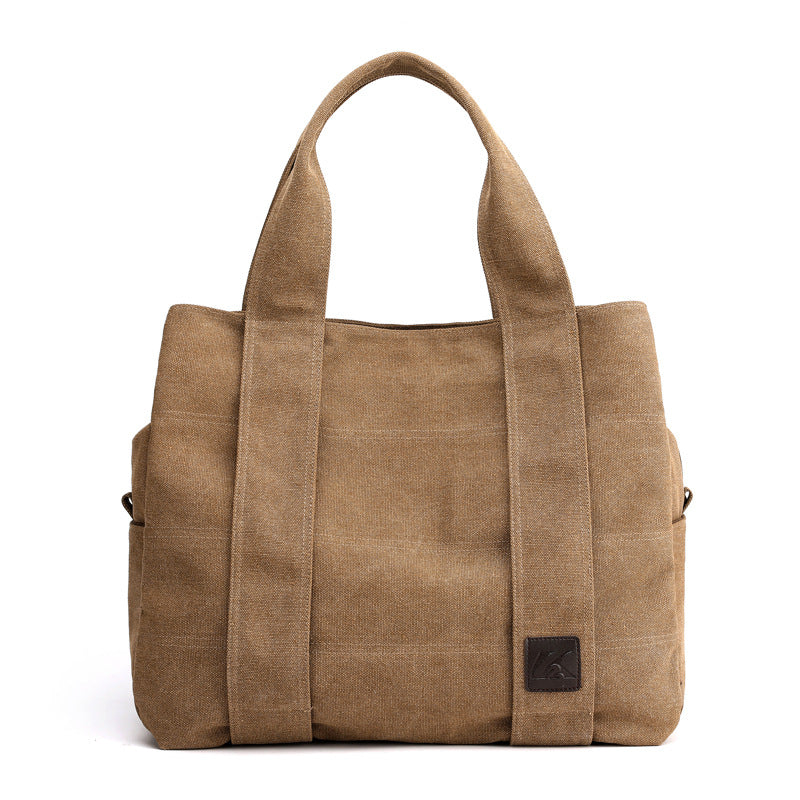 Canvas women's bag new versatile casual women's bag large capacity multi-layer women's handbag fashionable women's bag single shoulder bag