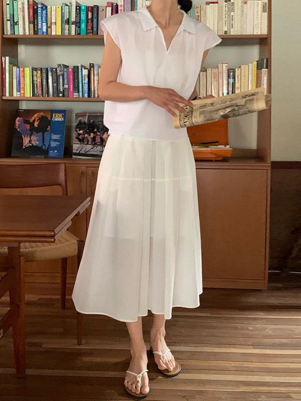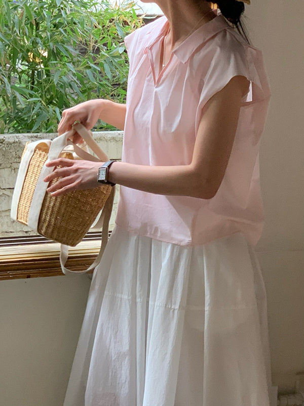 Cap Sleeve Loose Solid Color Lapel Blouses&Shirts Tops