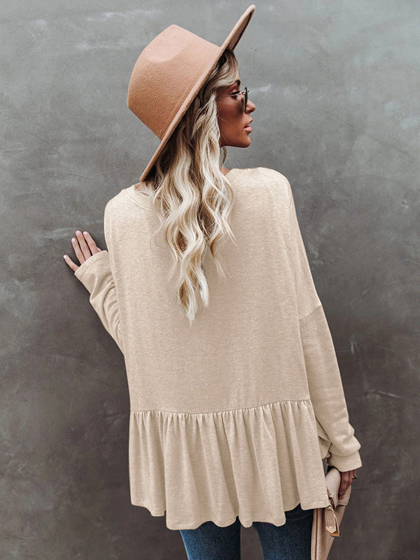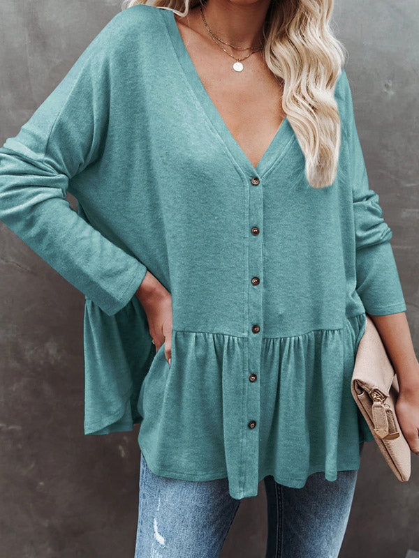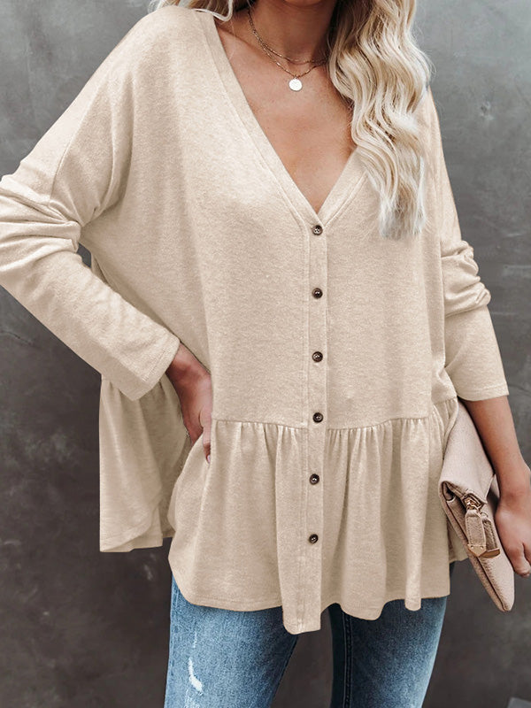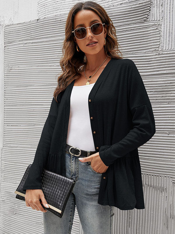 Casual 5 Colors Buttoned Falbala Pleated V-Neck Long Sleeves Outerwear