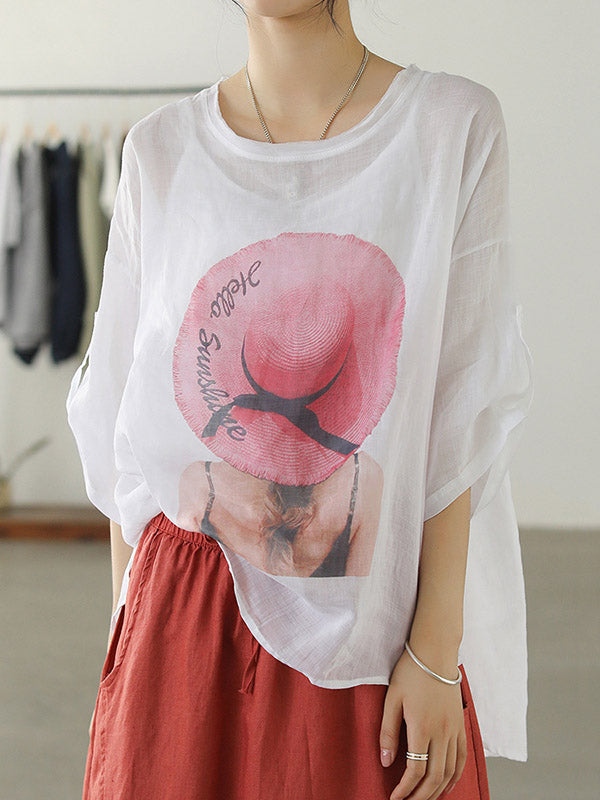 Casual Cartoon Printed Thin Half Sleeve T-Shirts Tops
