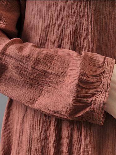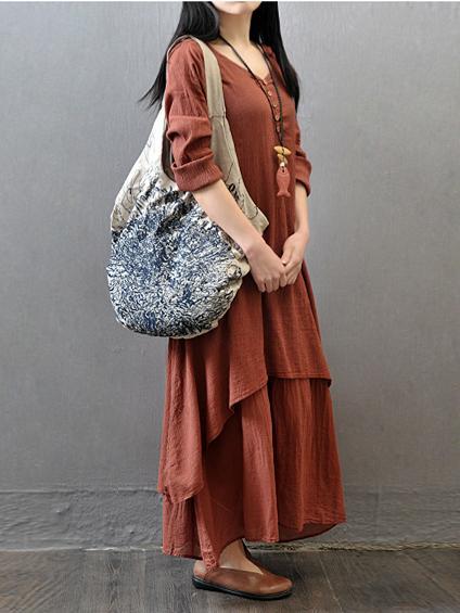 Casual Cotton Fashion Dress in Brick Color