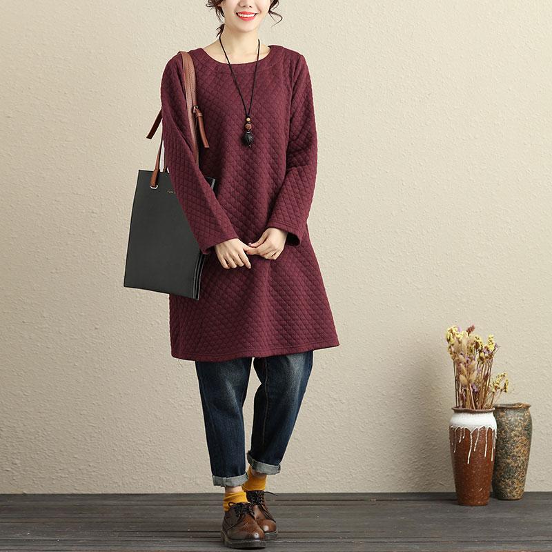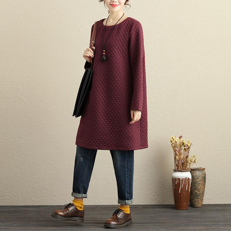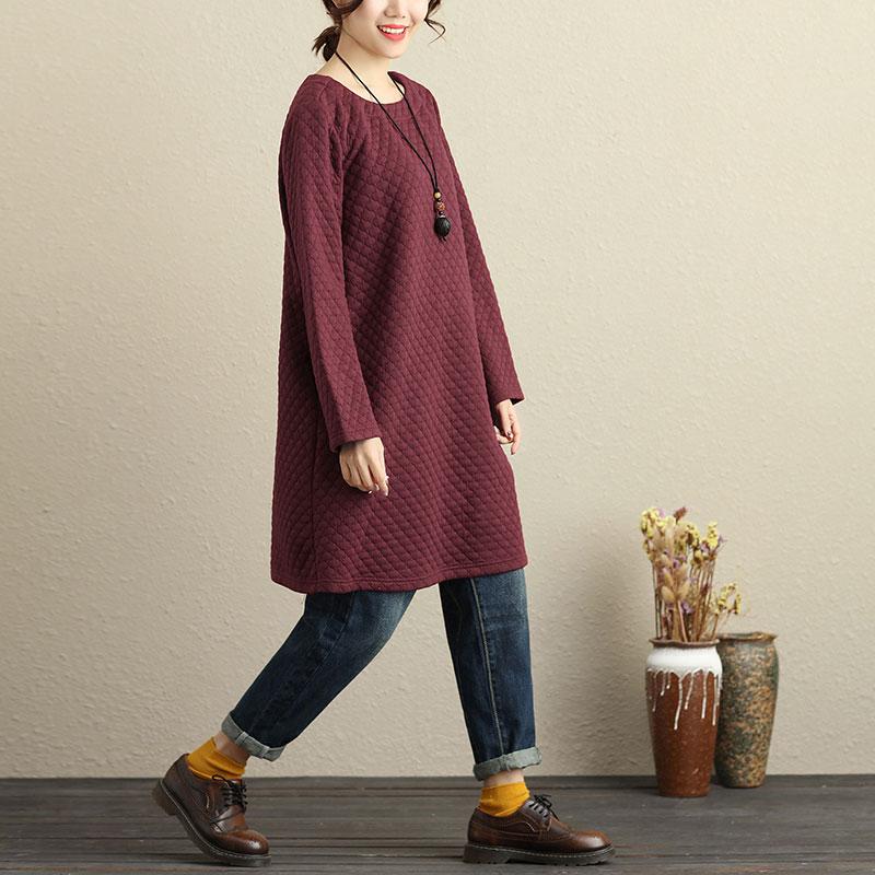 Casual Cotton Keep Warm Wine Red Winter Women Dress
