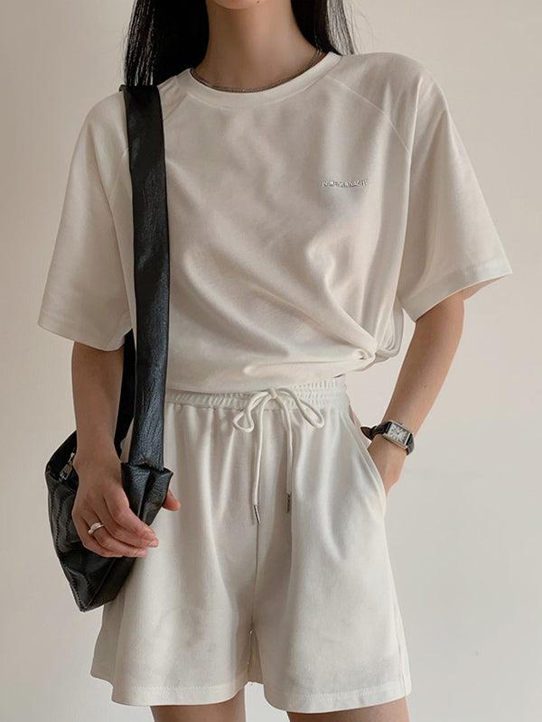 Casual Drawstring Elasticity Waist Solid Wide-Leg Shorts